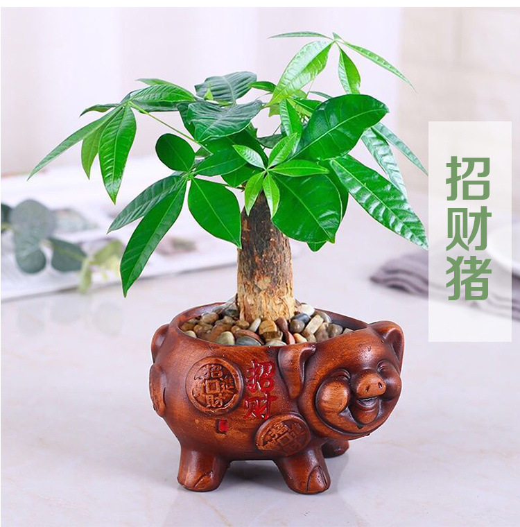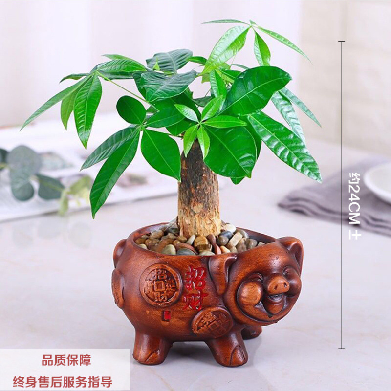 • 행운의 돼지 세라믹 분지 + 단일 돈 나무