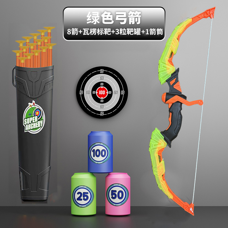 • 대형 [밝은 녹색 활과 화살] 화살 8개 + 화살통 + 표적 + 캔 3개 포함