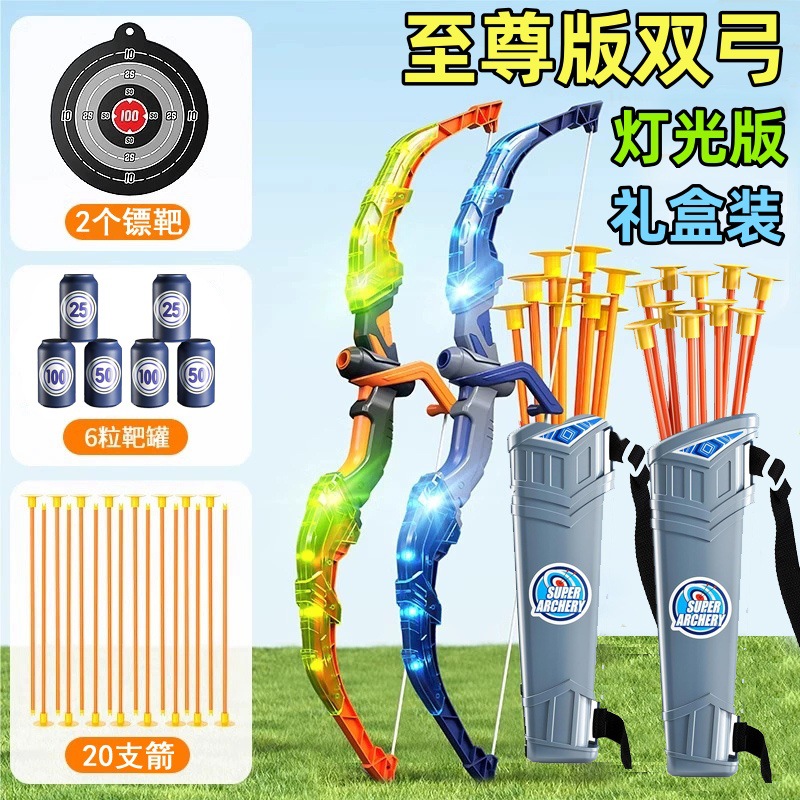 • [색상 상자] 파란색 + 녹색 빛 활 + 화살 20개 + 화살통 2개 + 다트판 2개 + 병 6개