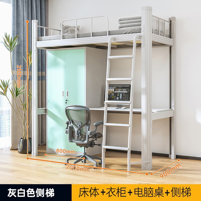침대와 테이블 조합 침대 아파트 높은 침대 위아래로 높낮이가 다른 이층 철제 철제 프레임 침대 철제 침대 학생 기숙사 침대