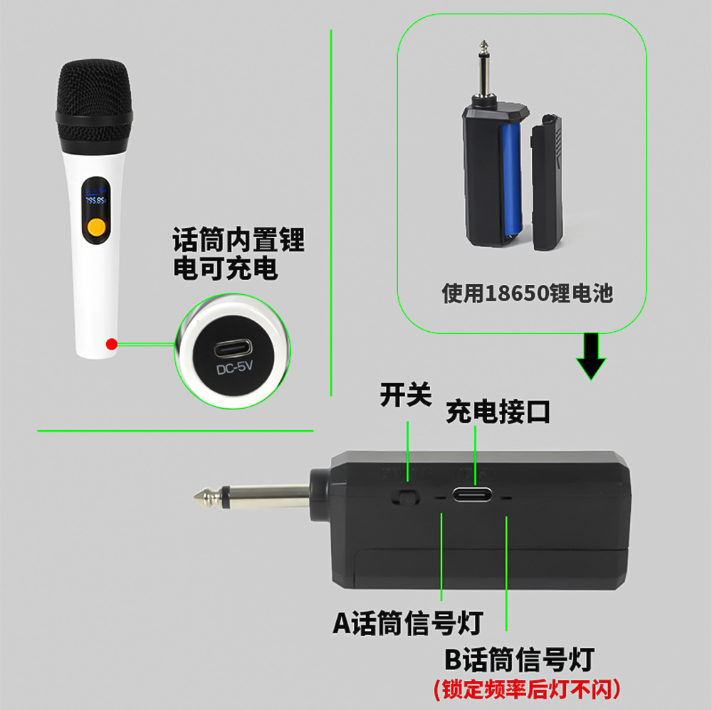 무선 마이크 충전식 1-2 무선 휴대용 KTV 노래 듀얼 마이크 크로스보더 핫셀러 야외 xs