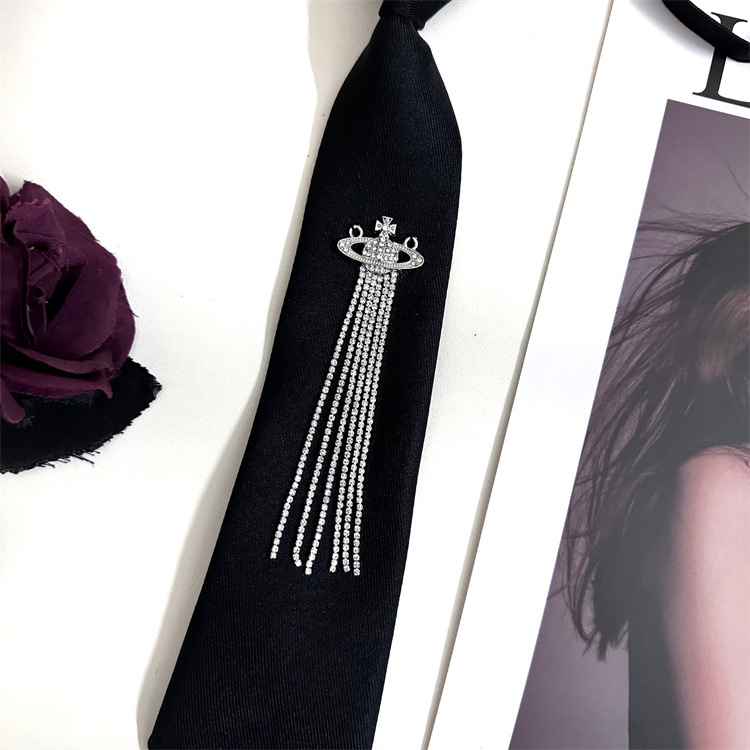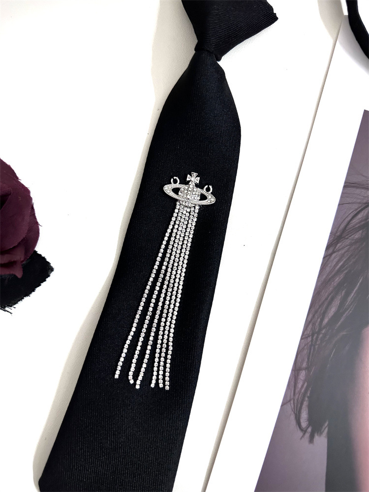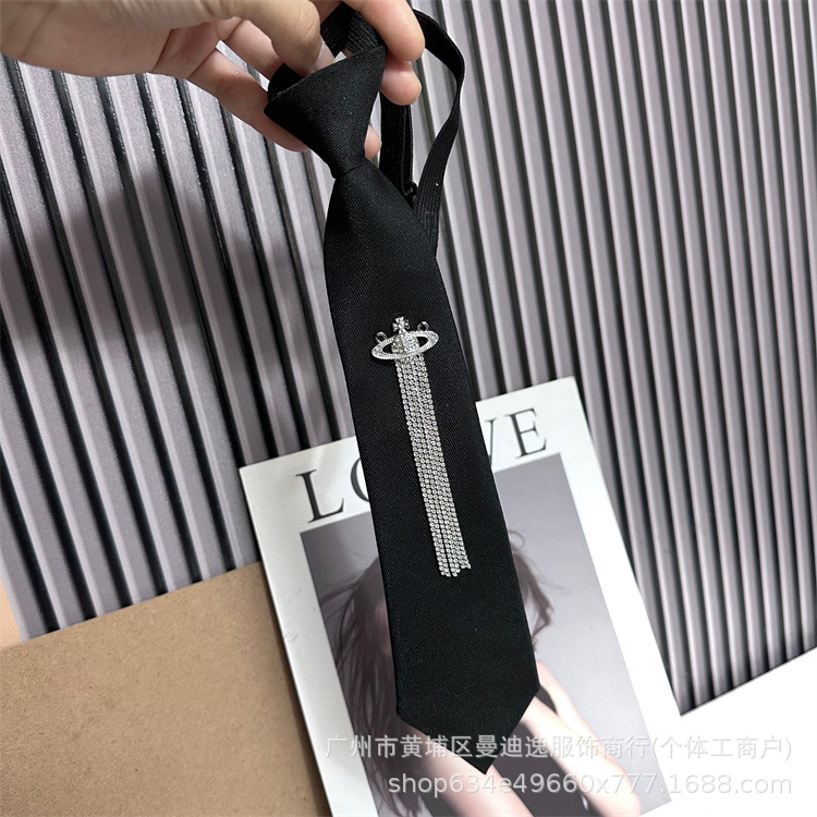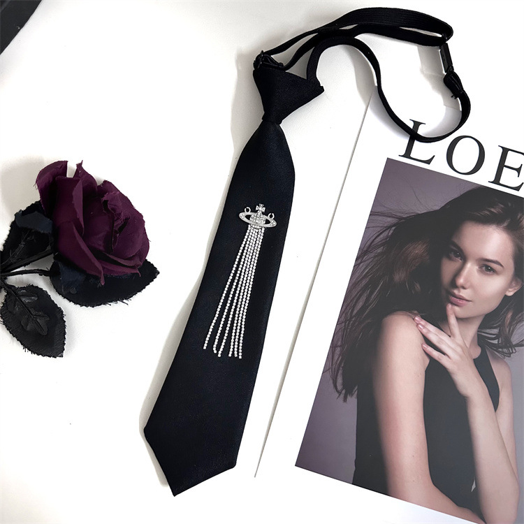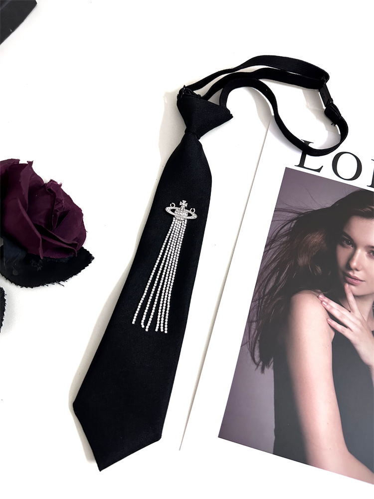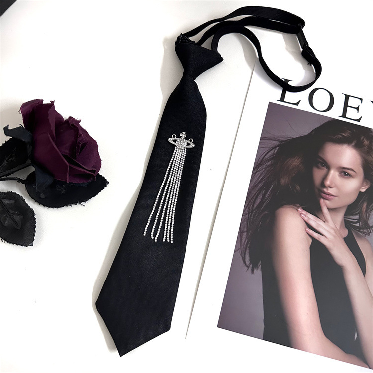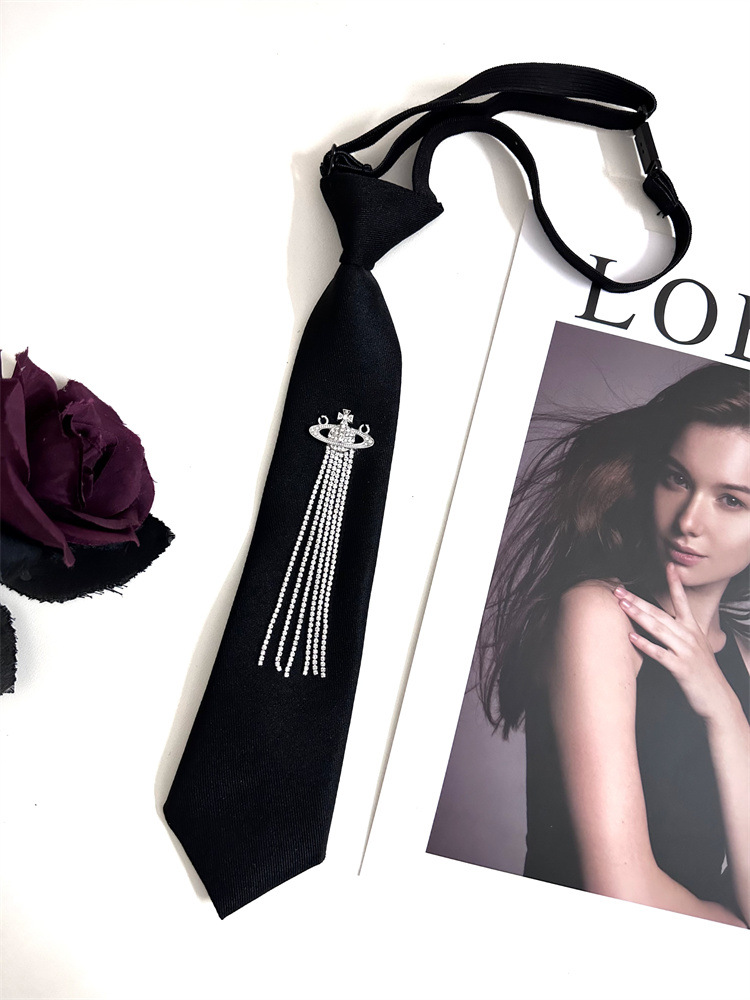 한국 스타일 대학 스타일 맞춤형 프린지 라인스톤 흙 행성 블랙 넥타이 여성용 조절 가능 jk 셔츠 스카프
