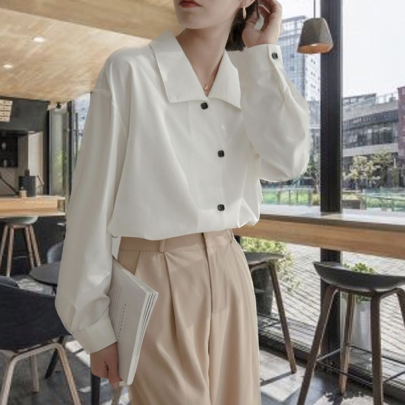 여성용 여름 쉬폰 화이트 셔츠, 틈새 디자인, 루즈한 긴팔 드레이프, 다재다능하고 고급스럽고 우아한 탑스토어 가기