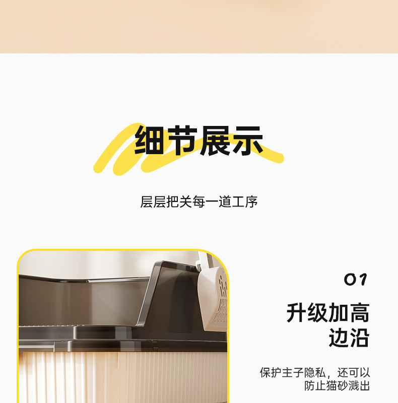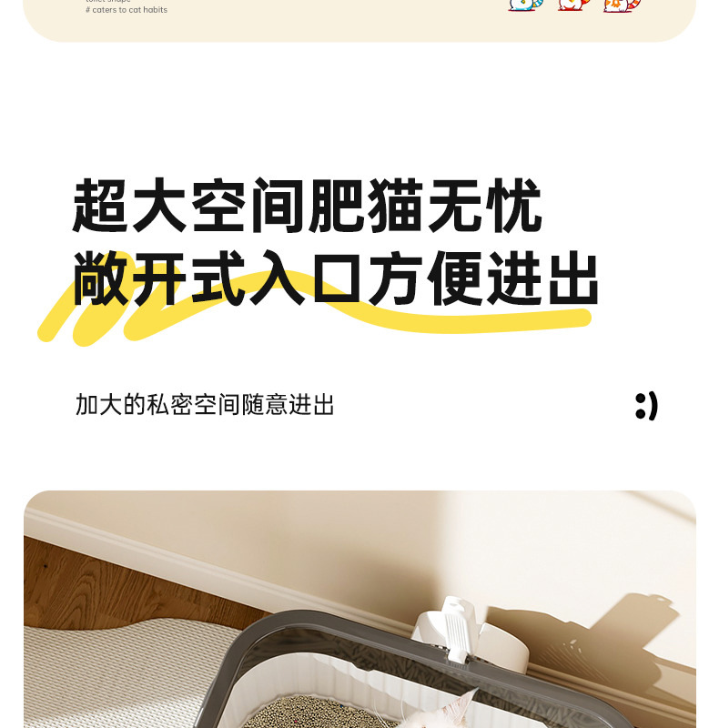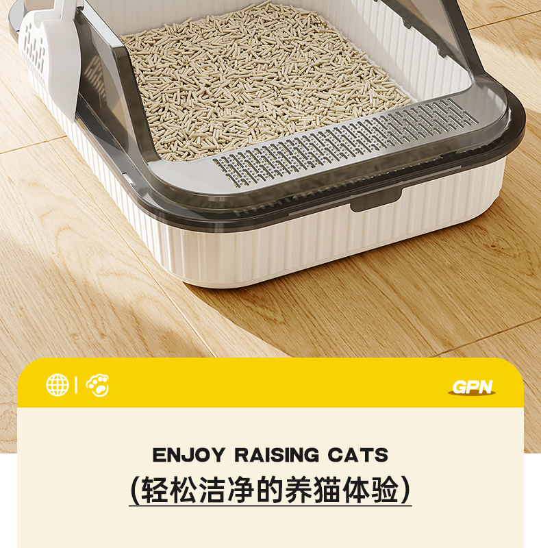 고양이 쓰레기통, 대형, 물 튀김 방지, 대형 고양이 화장실, 고양이 모래 반밀폐형 고양이 쓰레기통, 새끼 고양이 소형스토어 가기