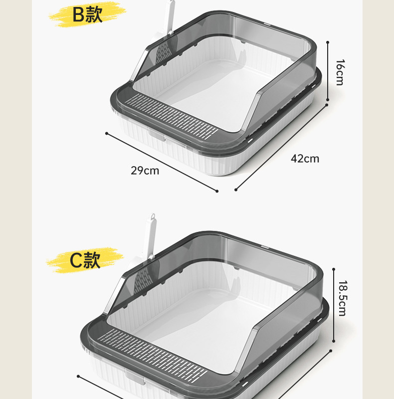 고양이 쓰레기통, 대형, 물 튀김 방지, 대형 고양이 화장실, 고양이 모래 반밀폐형 고양이 쓰레기통, 새끼 고양이 소형