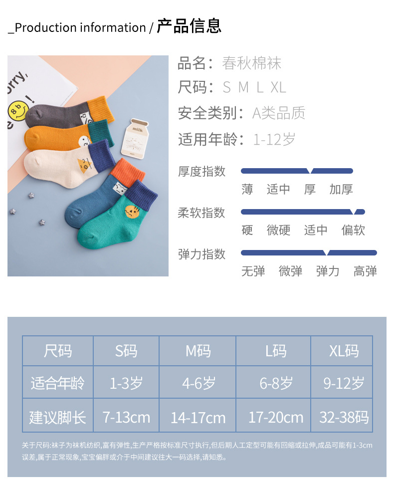 어린이 양말 사계절 아기 아기 양말 소년 소녀 양말 봄과 가을 두꺼운 종아리 양말 중대형 어린이 면 양말