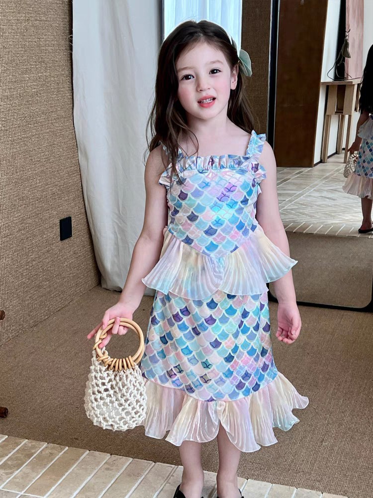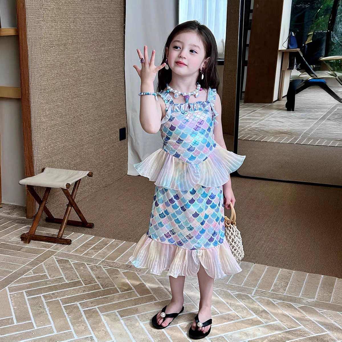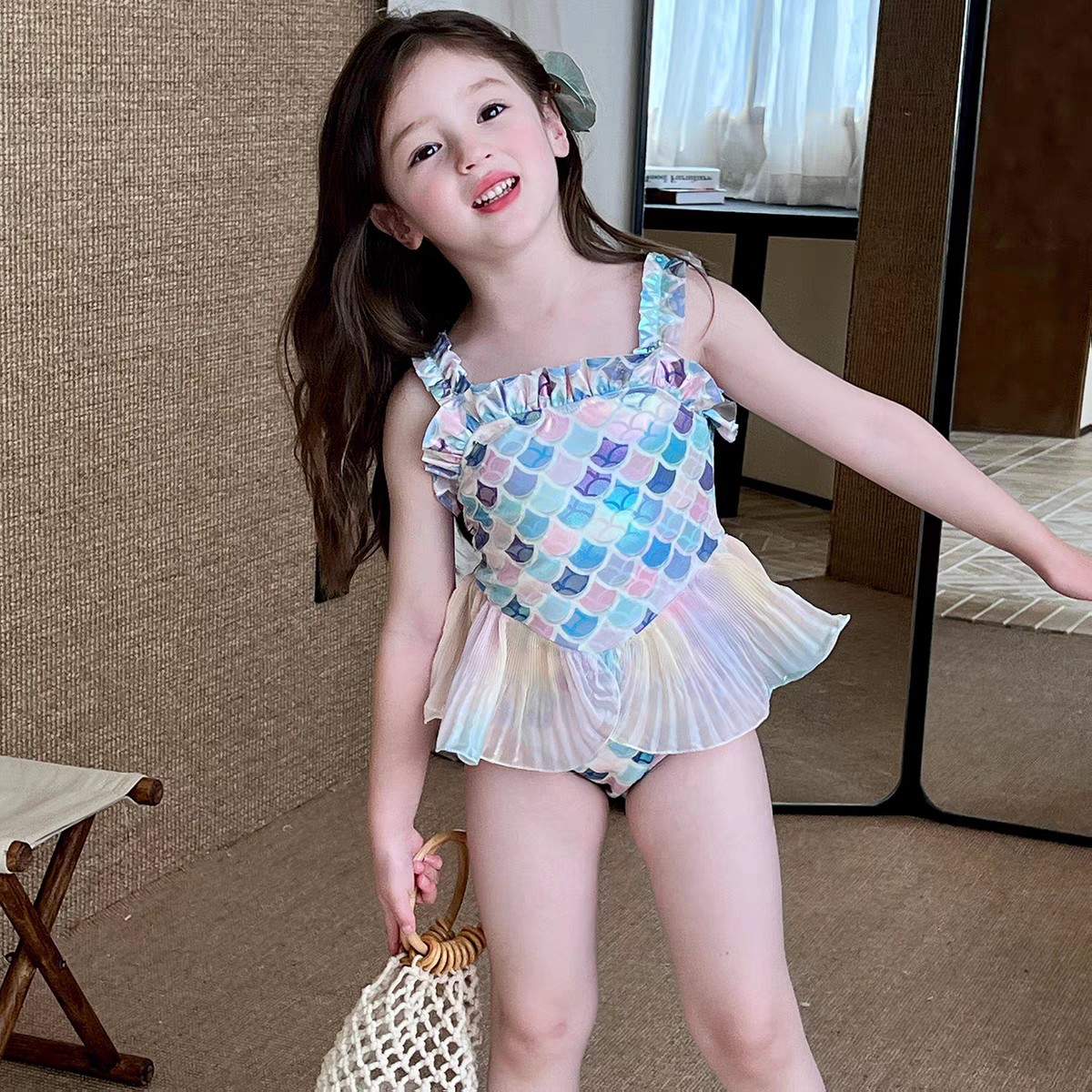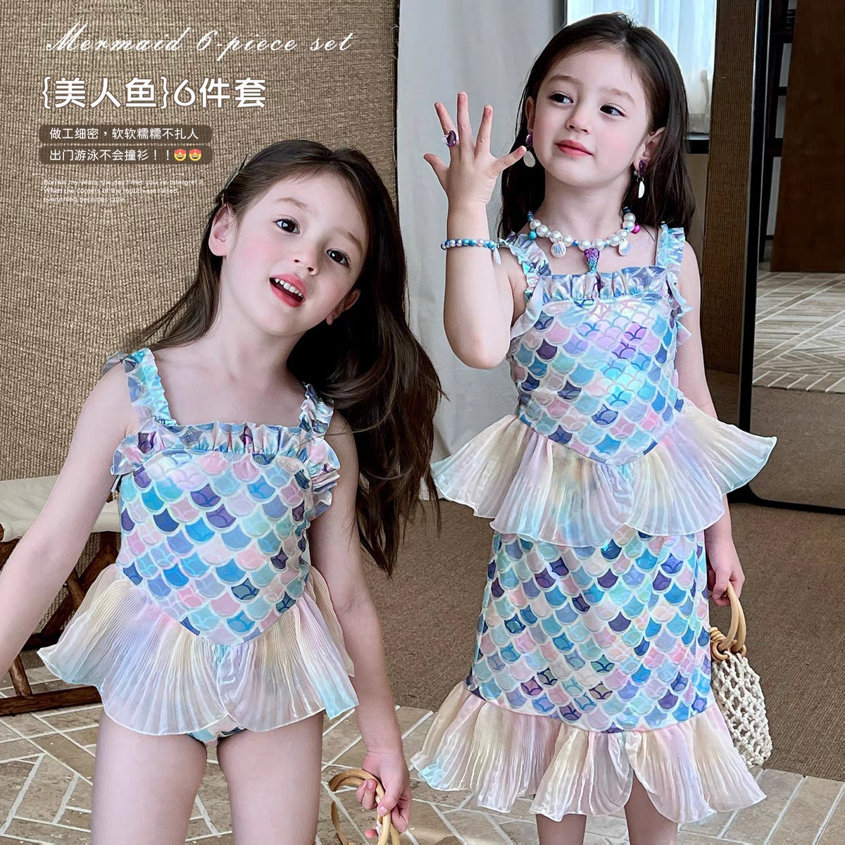 2025년 여름 여아용 인어공주 원피스 수영복, 아동용 여아용 노출방지 피쉬테일 수영복, 수영모자