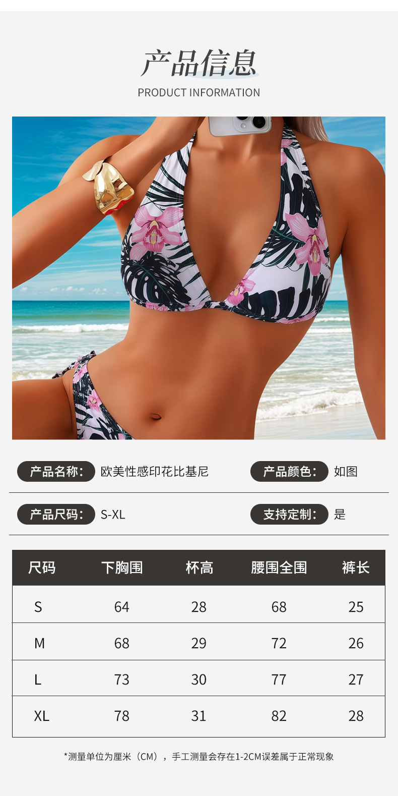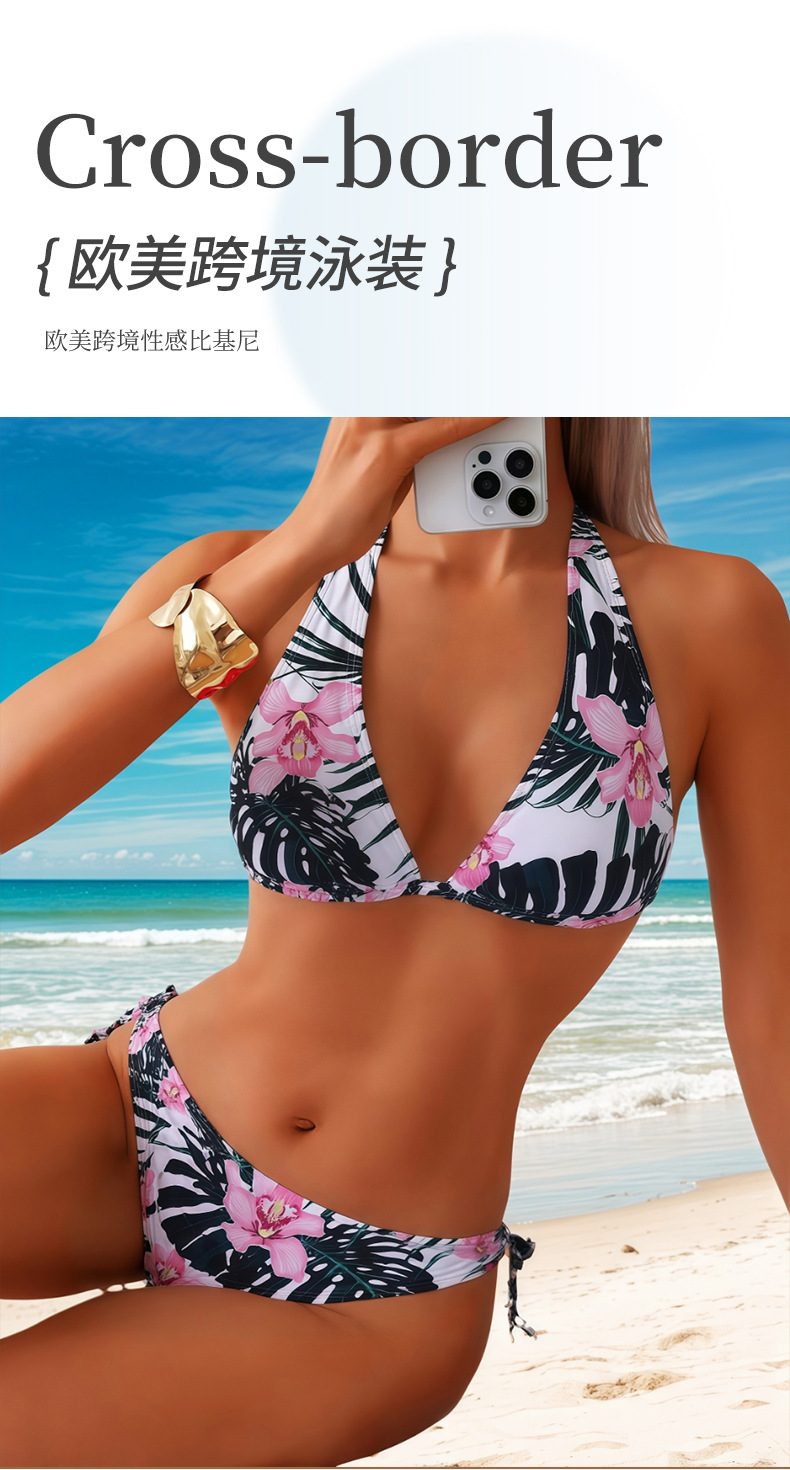 유럽과 미국의 국경 간 2025 새로운 패션 프린트 섹시한 푸시 업 드로스트링 스트랩 스플릿 여성 비키니 수영복스토어 가기