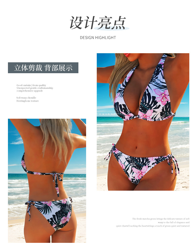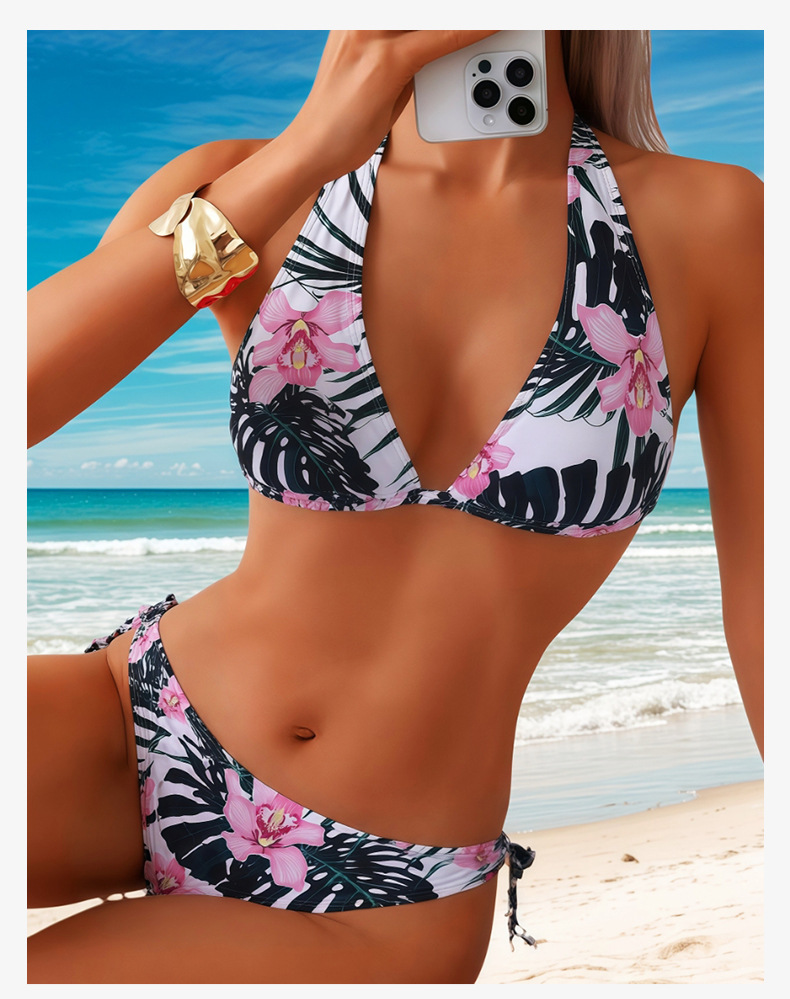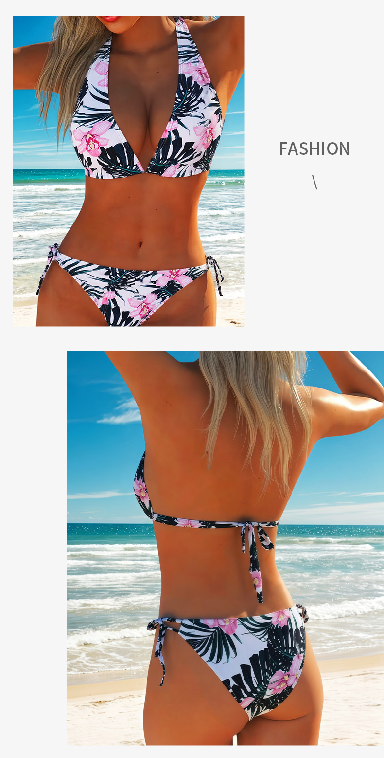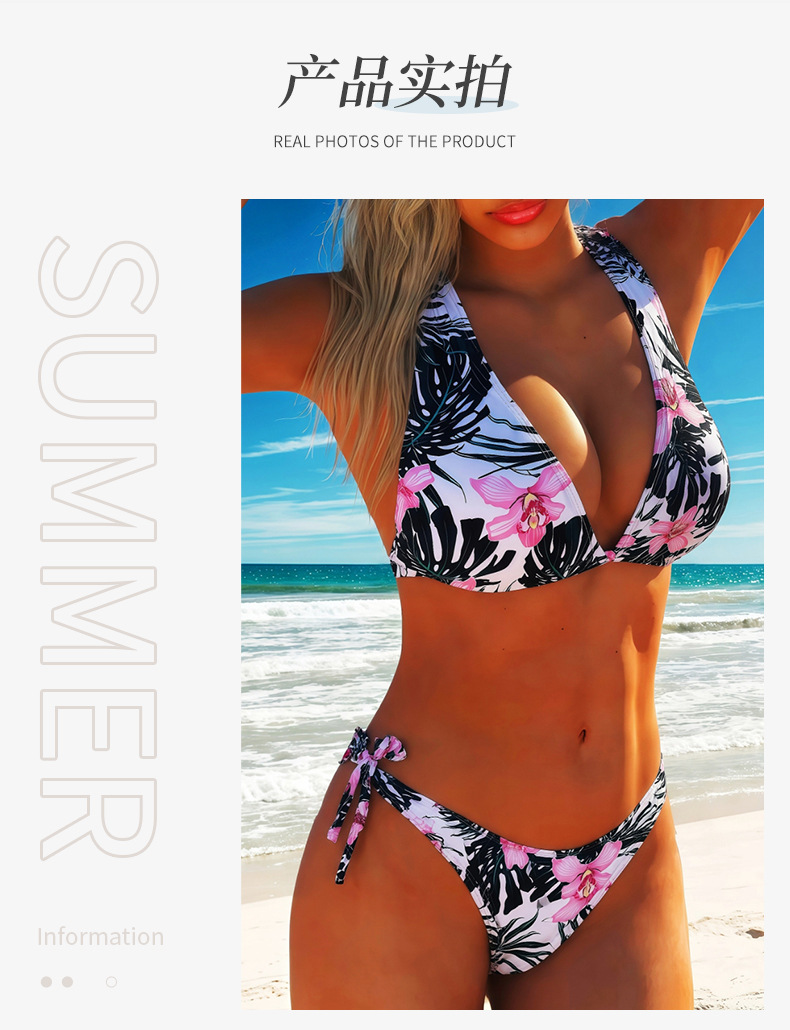 유럽과 미국의 국경 간 2025 새로운 패션 프린트 섹시한 푸시 업 드로스트링 스트랩 스플릿 여성 비키니 수영복