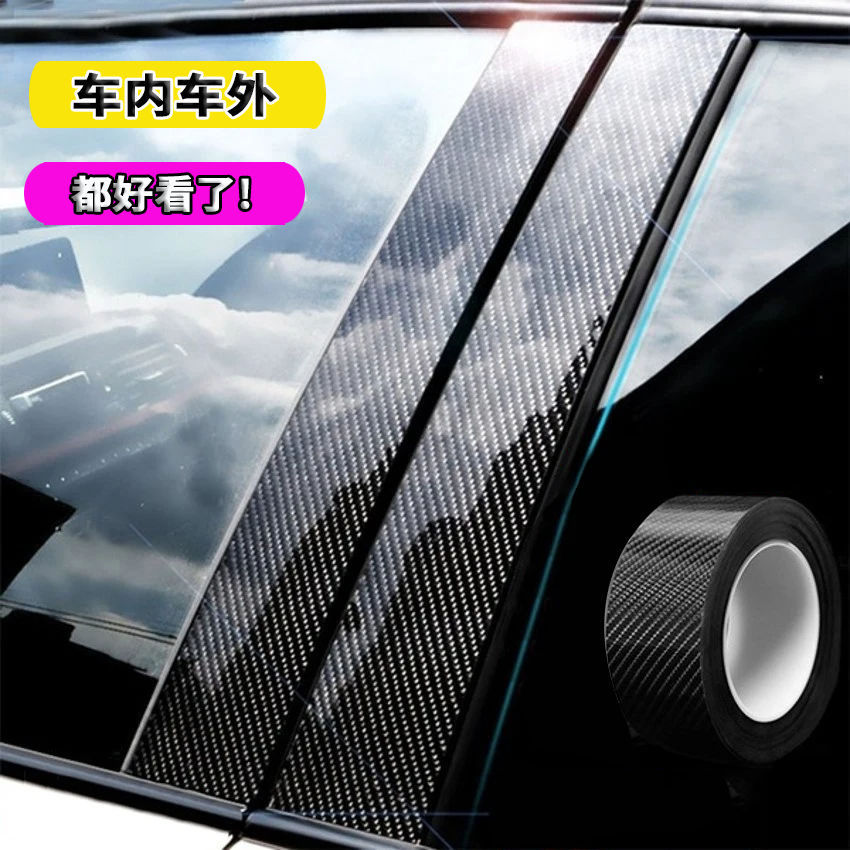 碳纤维贴纸黑色内饰中控车身装饰贴膜亮面条纹车窗车门后尾箱中网