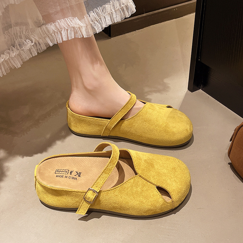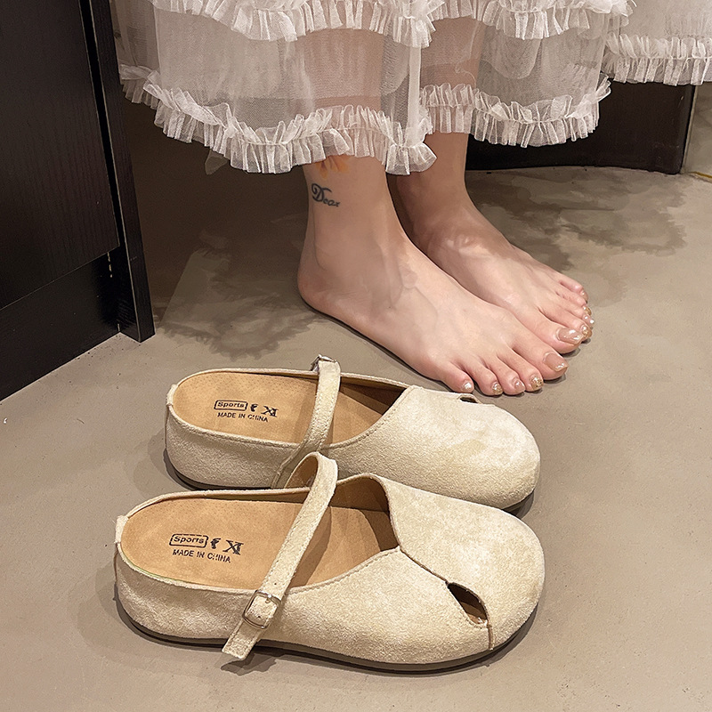여름 아우터로 착용할 수 있는 여성용 중공 에어 토캡 샌들 2025 신상 여름 게으른 중국산 동백 뮬