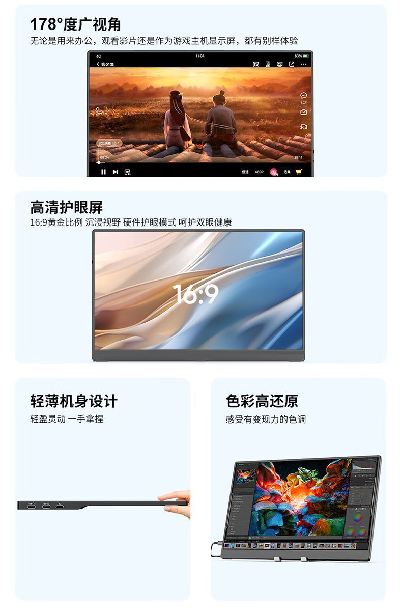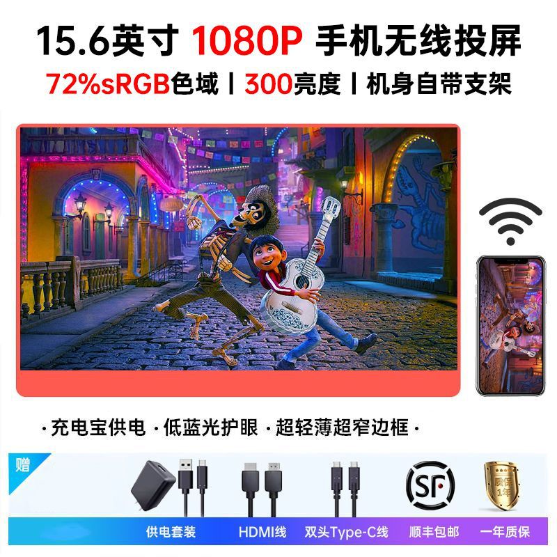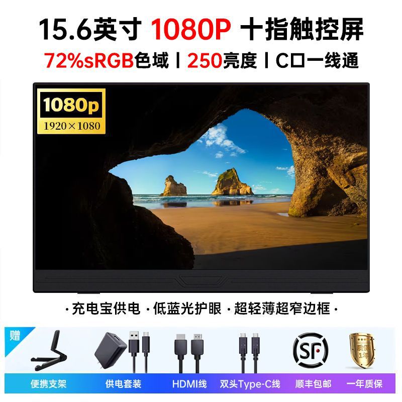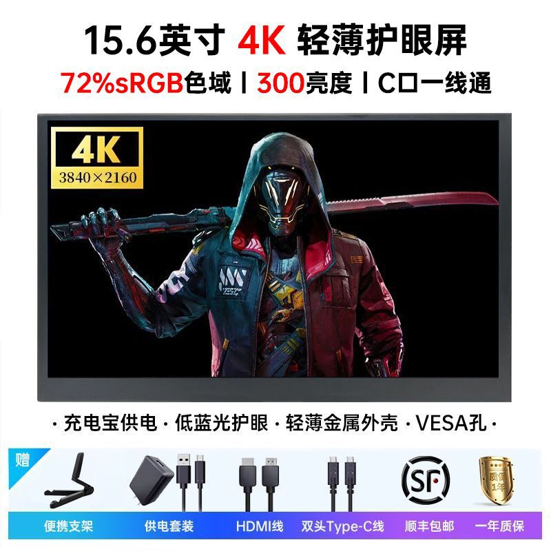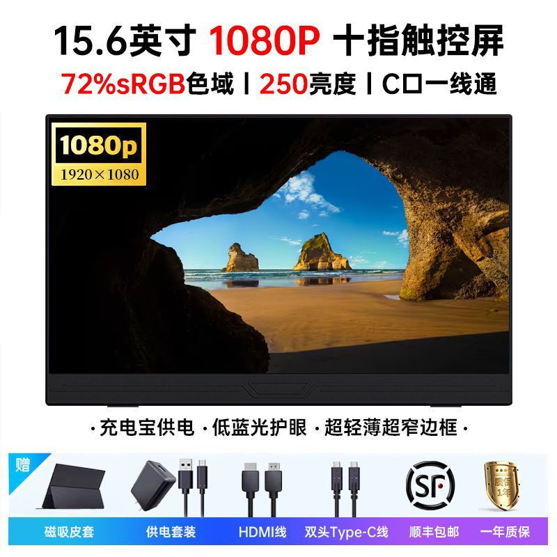 15.6inch 휴대용 디스플레이 터치 스크린 ps/스위치/Xbox 스크린 프로젝션 외부 4K 컴퓨터 보조 스크린 크로스보더스토어 가기