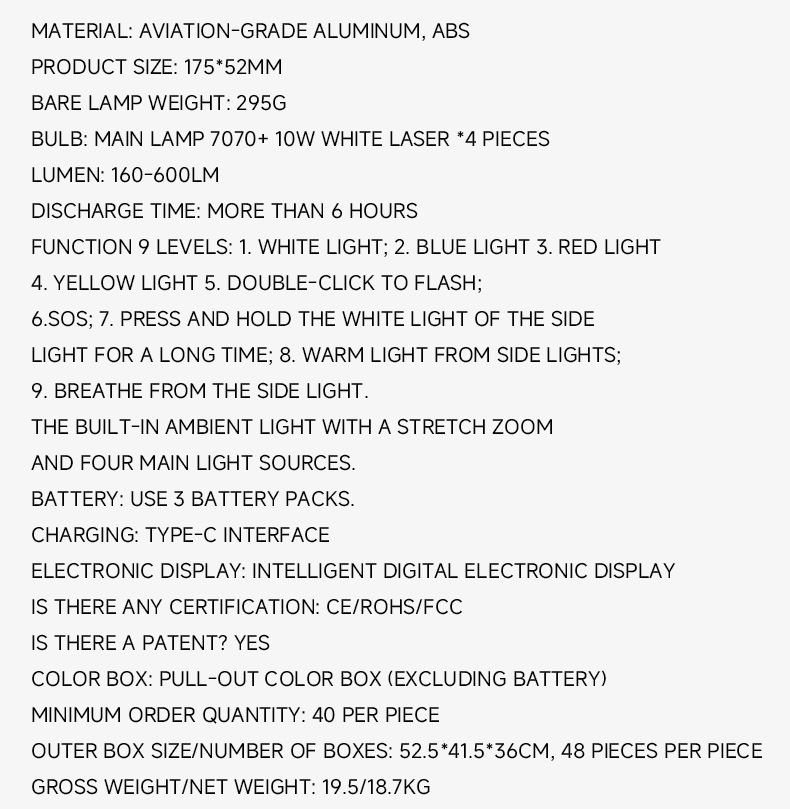 • RB-527 4광원 백색 레이저 대포 표준 모델(베어 램프 + 3섹션 18650 배터리 팩 + 데이터 케이블 + 컬러 박스)