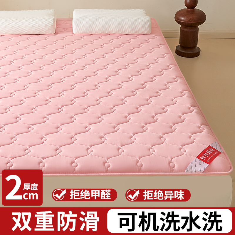 • 패셔너블한 순면 통기성 미끄럼 방지 매트리스 핑크 두께 2cm [이중 미끄럼 방지, 세탁기 사용 가능]