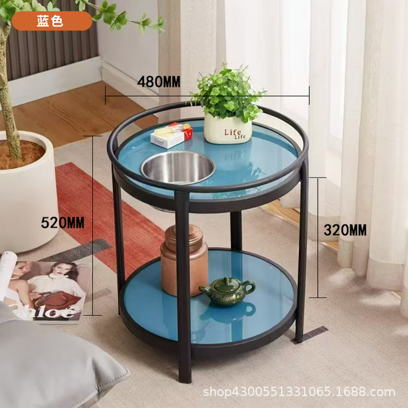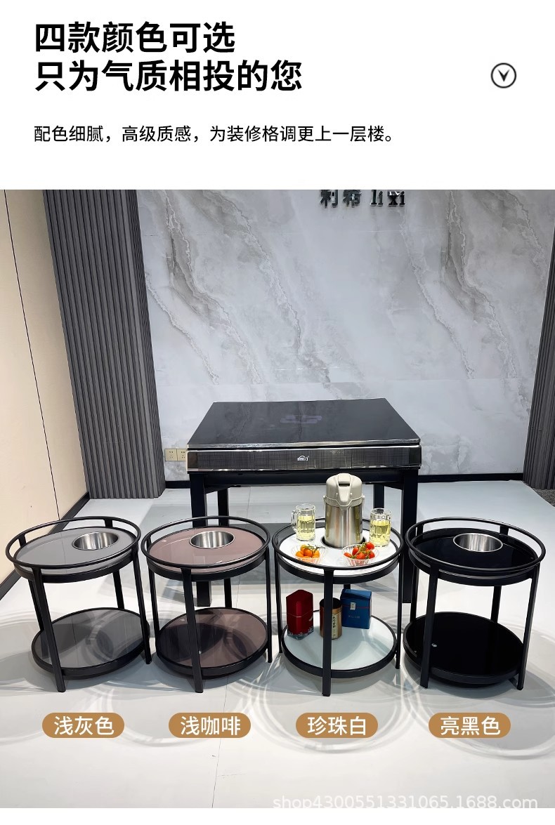 마작머신 커피테이블, 2층 체스 및 카드룸 특수 재떨이, 차대, 마작테이블 사이드테이블, 차테이블, 가벼운 럭셔리 원형 커피테이블스토어 가기