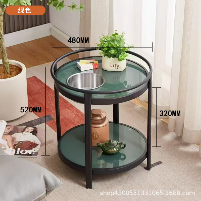 • 짙은 녹색 원형 강화유리 커피 테이블