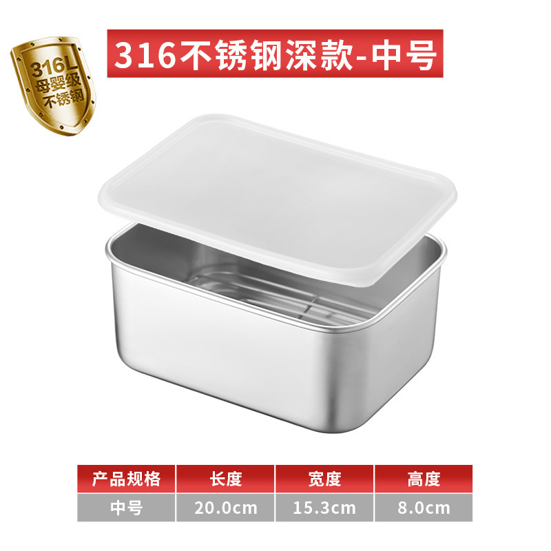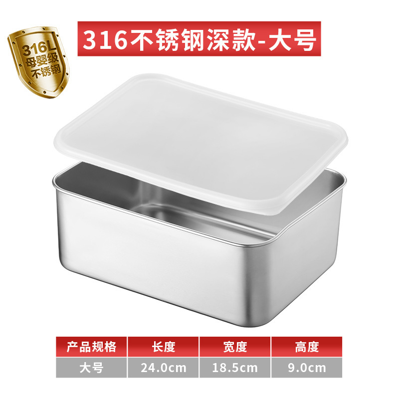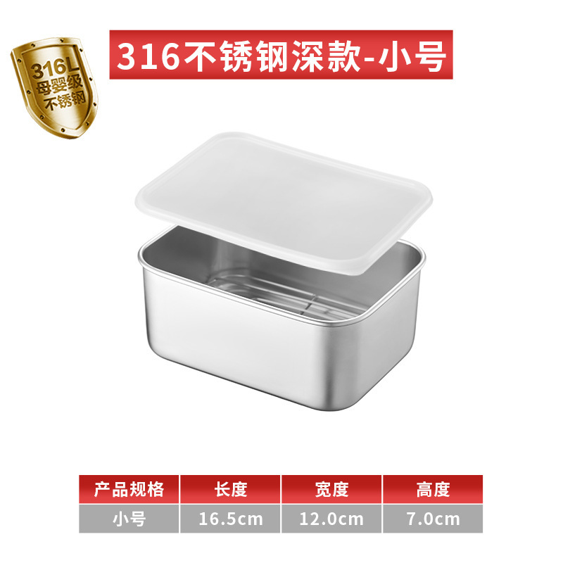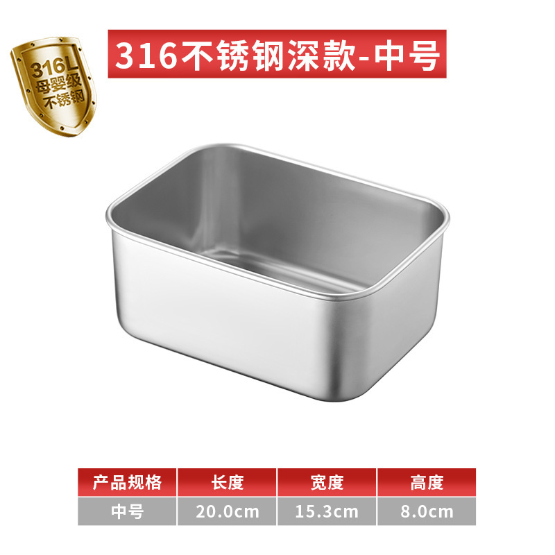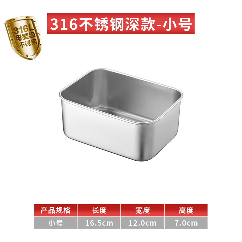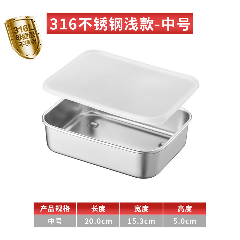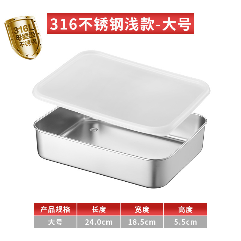 티라미수 용기 상자 스테인레스 스틸 식품 등급 플랫 바닥 사각형 플레이트 직사각형 필터 포함 뚜껑이 있는 좁은 가장자리 트레이스토어 가기