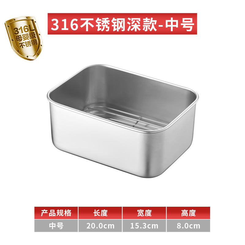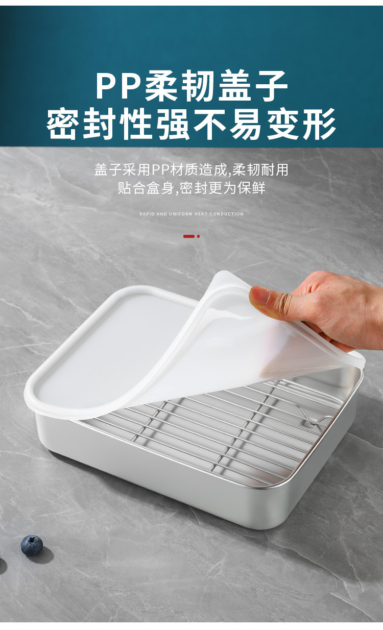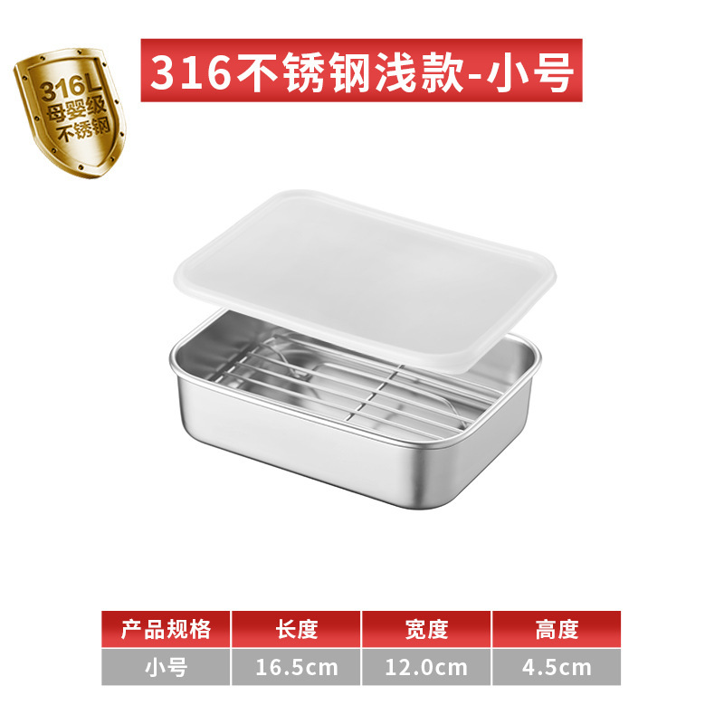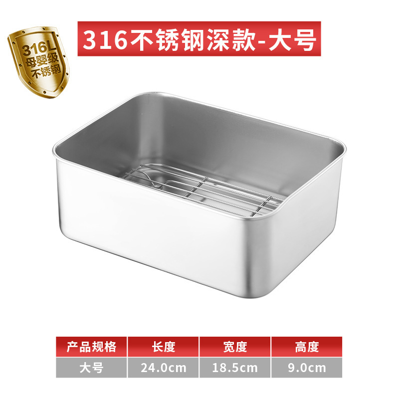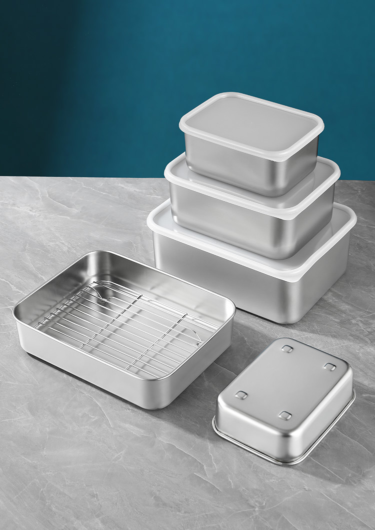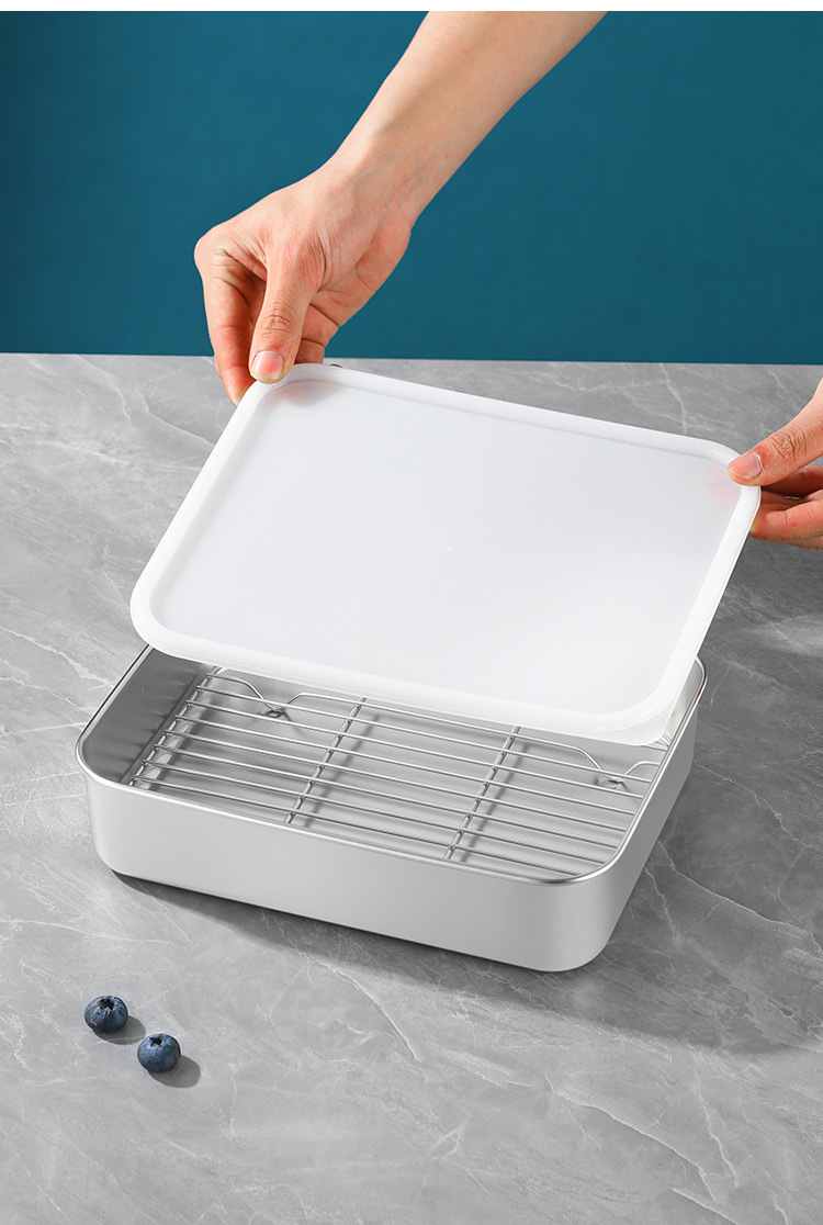 티라미수 용기 상자 스테인레스 스틸 식품 등급 플랫 바닥 사각형 플레이트 직사각형 필터 포함 뚜껑이 있는 좁은 가장자리 트레이