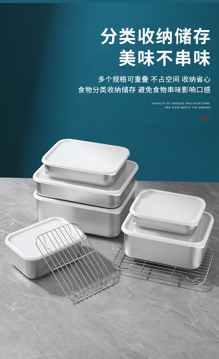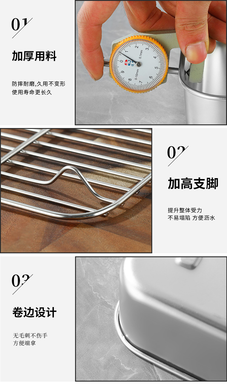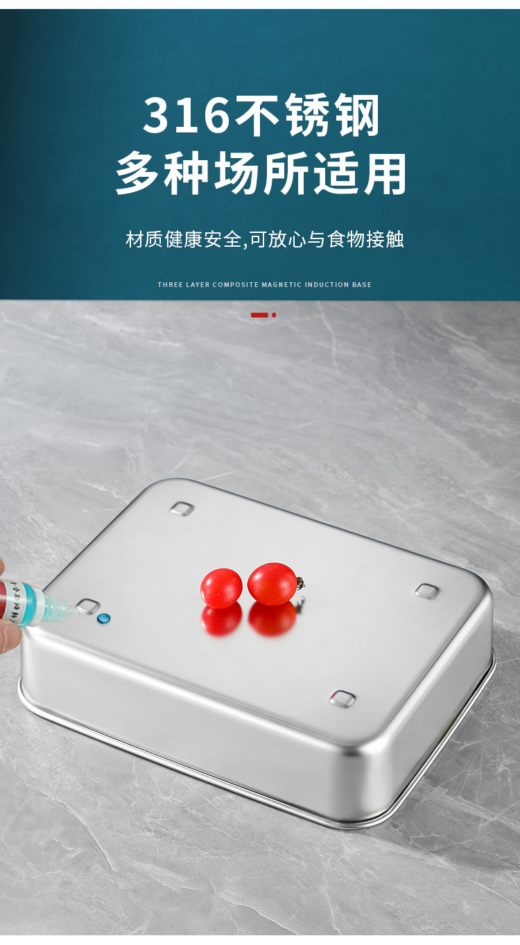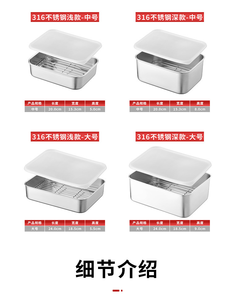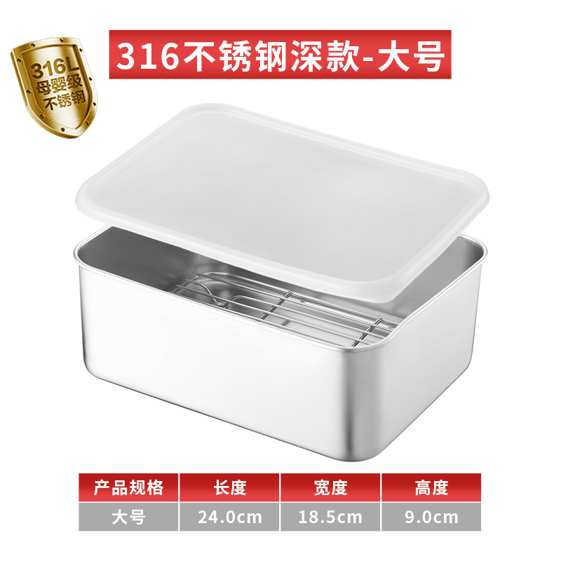 티라미수 용기 상자 스테인레스 스틸 식품 등급 플랫 바닥 사각형 플레이트 직사각형 필터 포함 뚜껑이 있는 좁은 가장자리 트레이