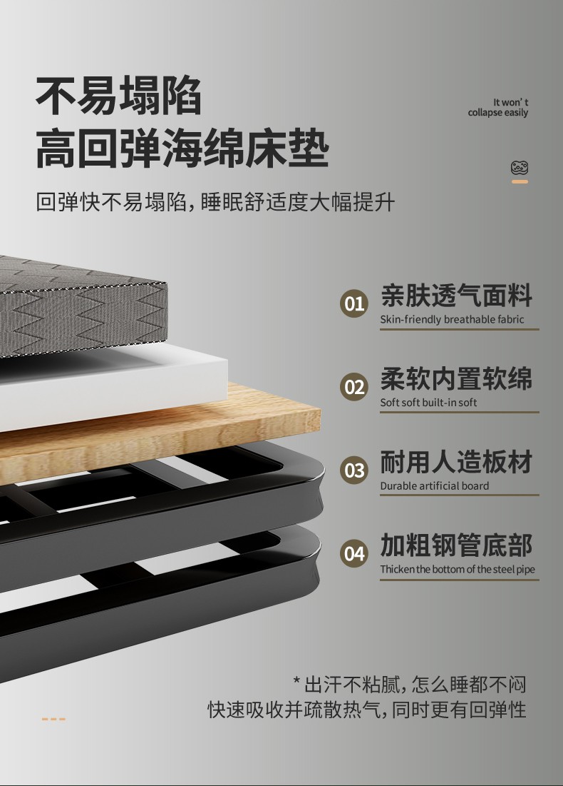 • 철골 두꺼운 판 + 두꺼운 스펀지 길이 190*폭 80 [설치 불필요 소프트 패키지 침대 옆 모델]