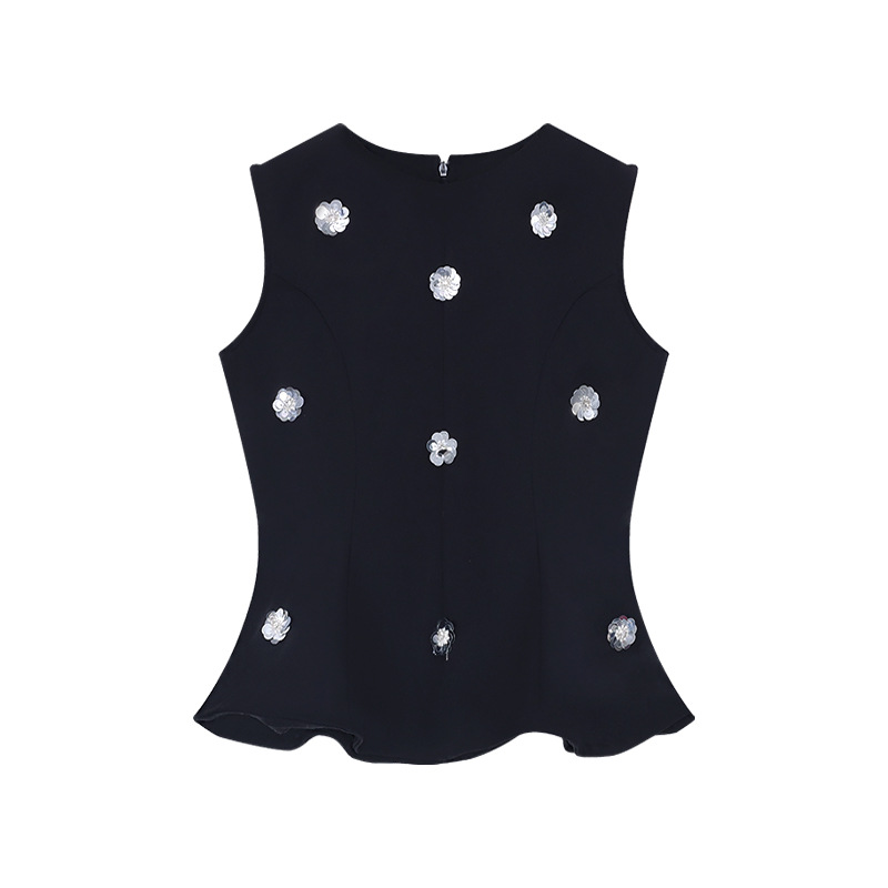 여름용 여성용 검은색 입체 꽃조끼, 민소매 하의, 디자인 라운드넥, 슬림한 허리, 기질 슈트스토어 가기