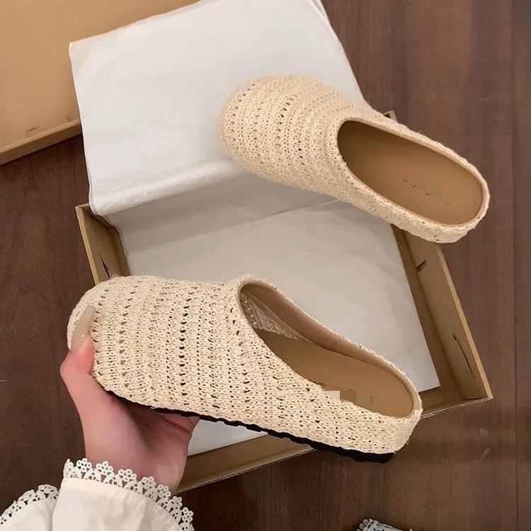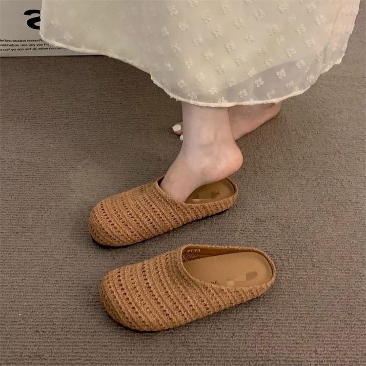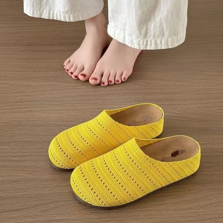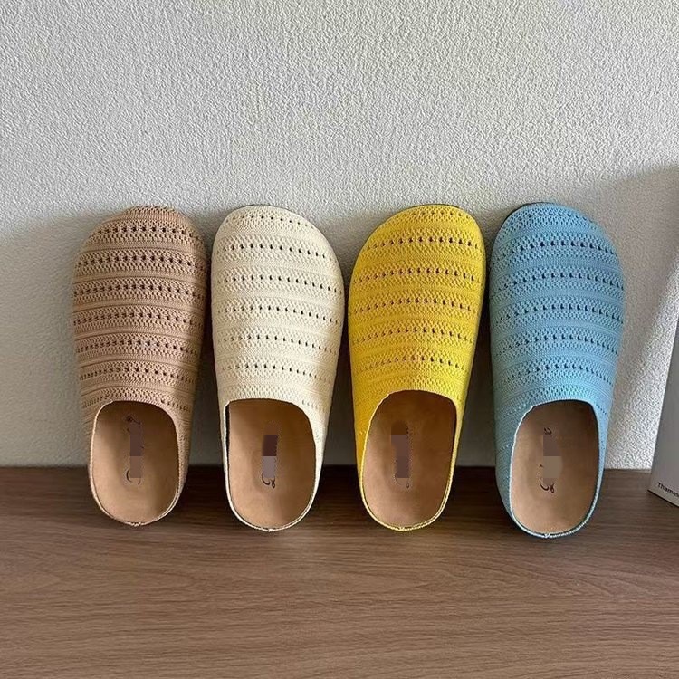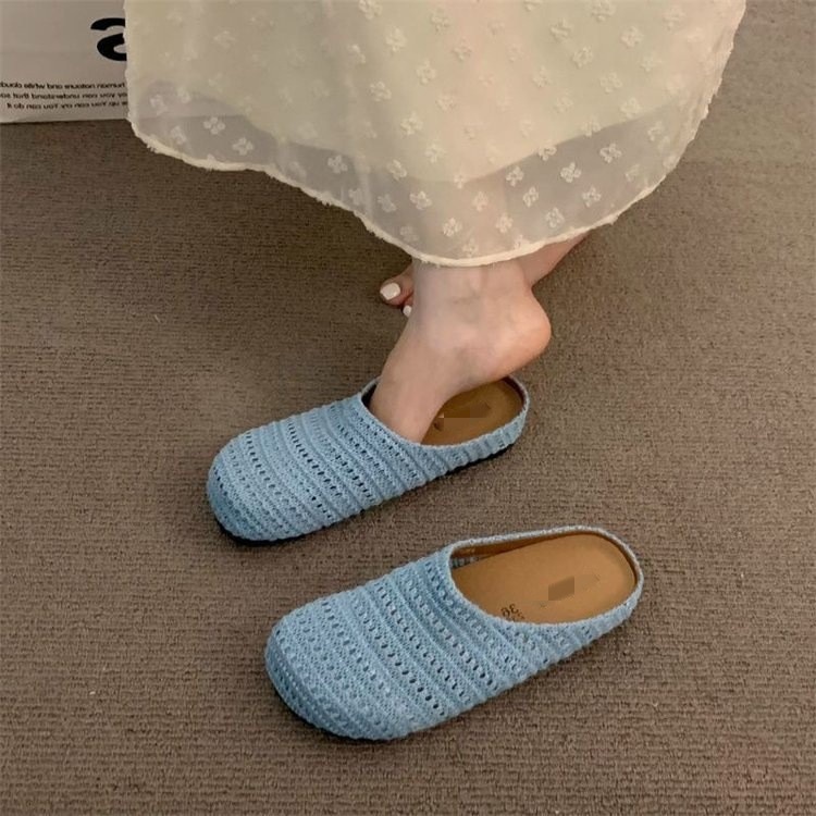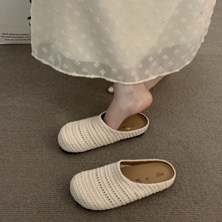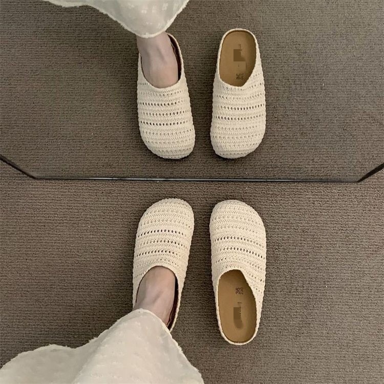 여성용 패셔너블한 니트 중공 통기성 발가락 반슬리퍼 2025 여름 신작 플랫 힐 슬립온 버켄스탁 슈즈스토어 가기
