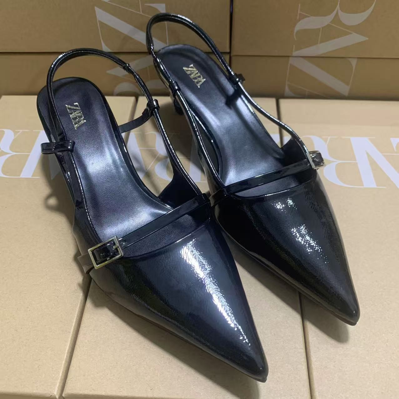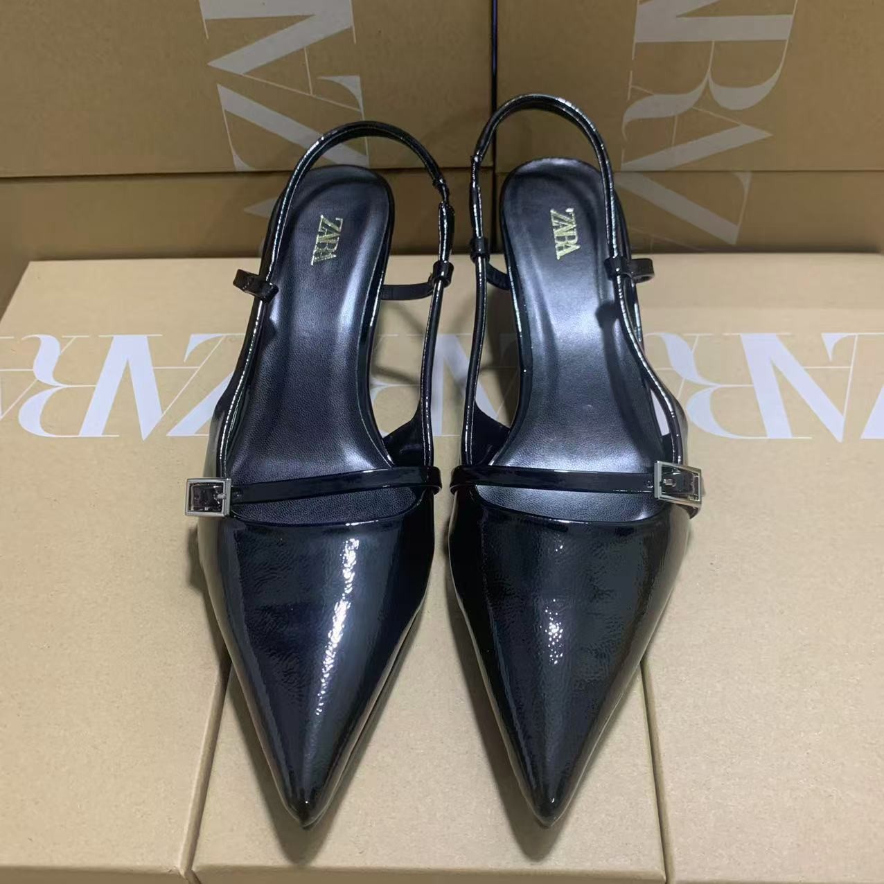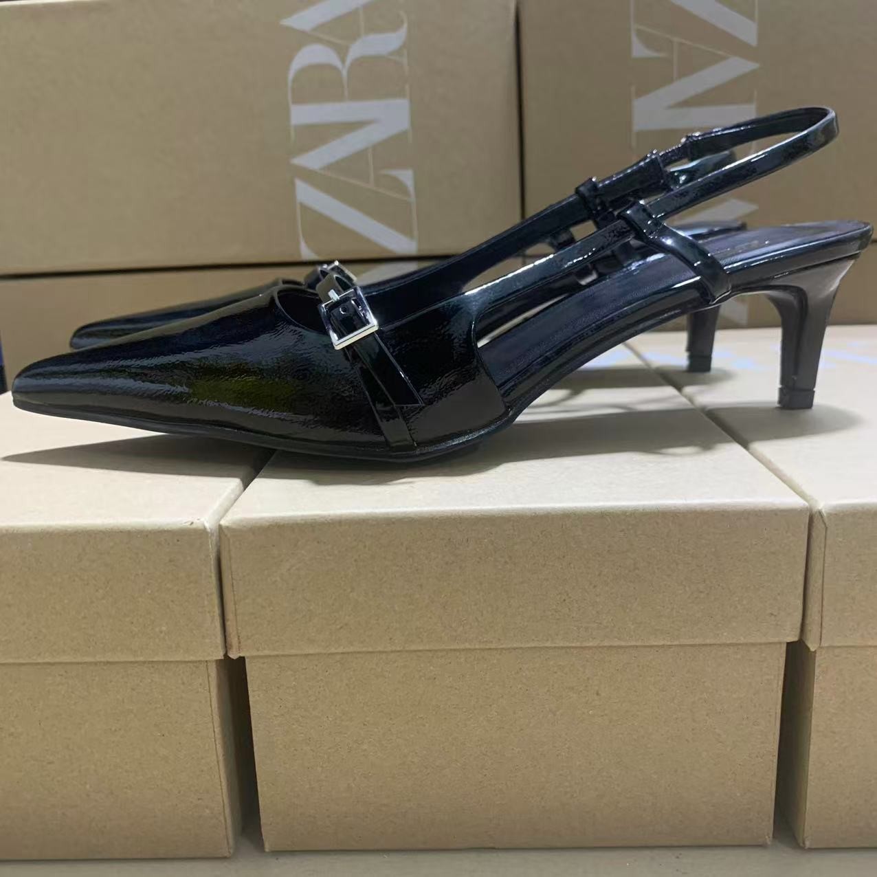 ZA 공장 직매 스페인 신상 2025 뾰족한 빨간색 버클이 달린 여성용 샌들스토어 가기