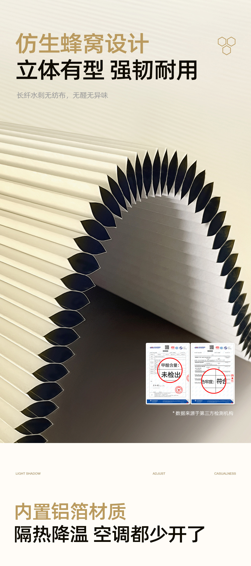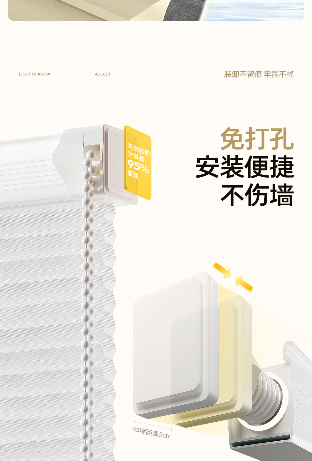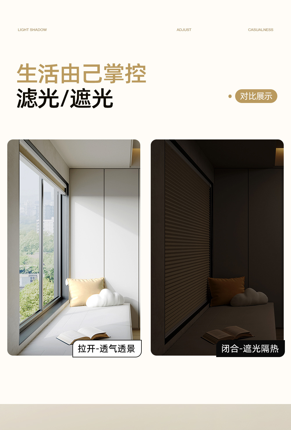 펀치 없는 벌집 커튼, 블라인드, 단열, 자외선 차단, 사무실 발코니, 침실, 위아래로 접을 수 있는 오르간 커튼
