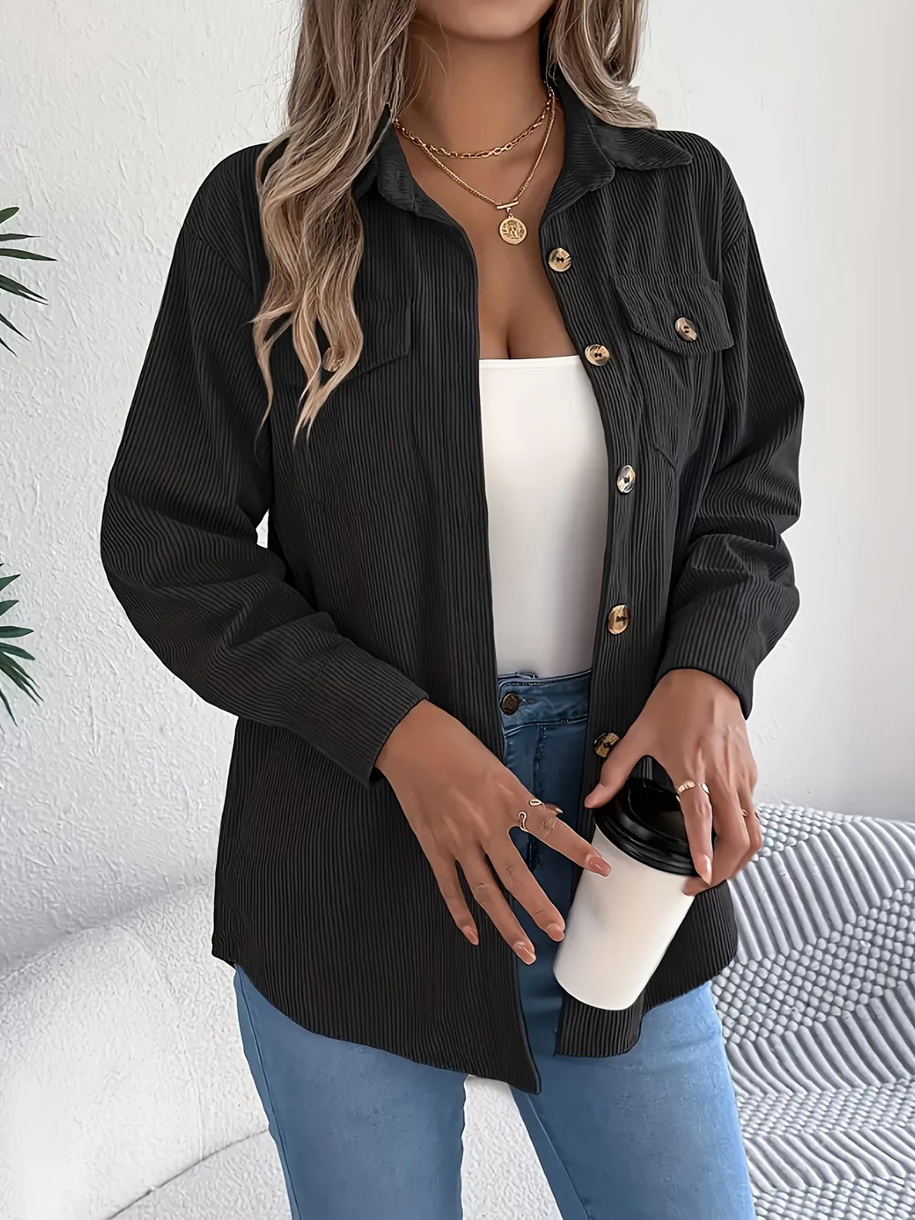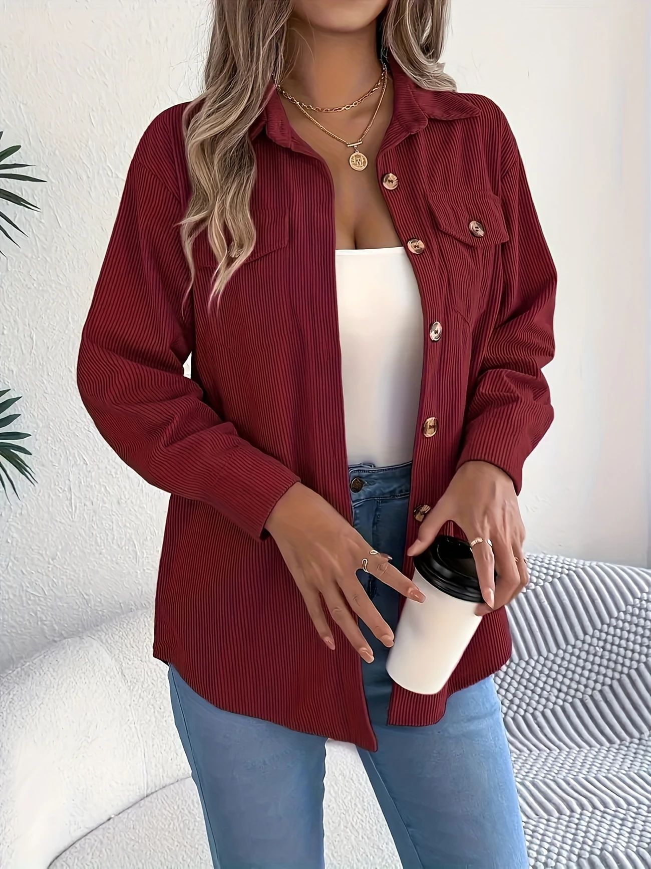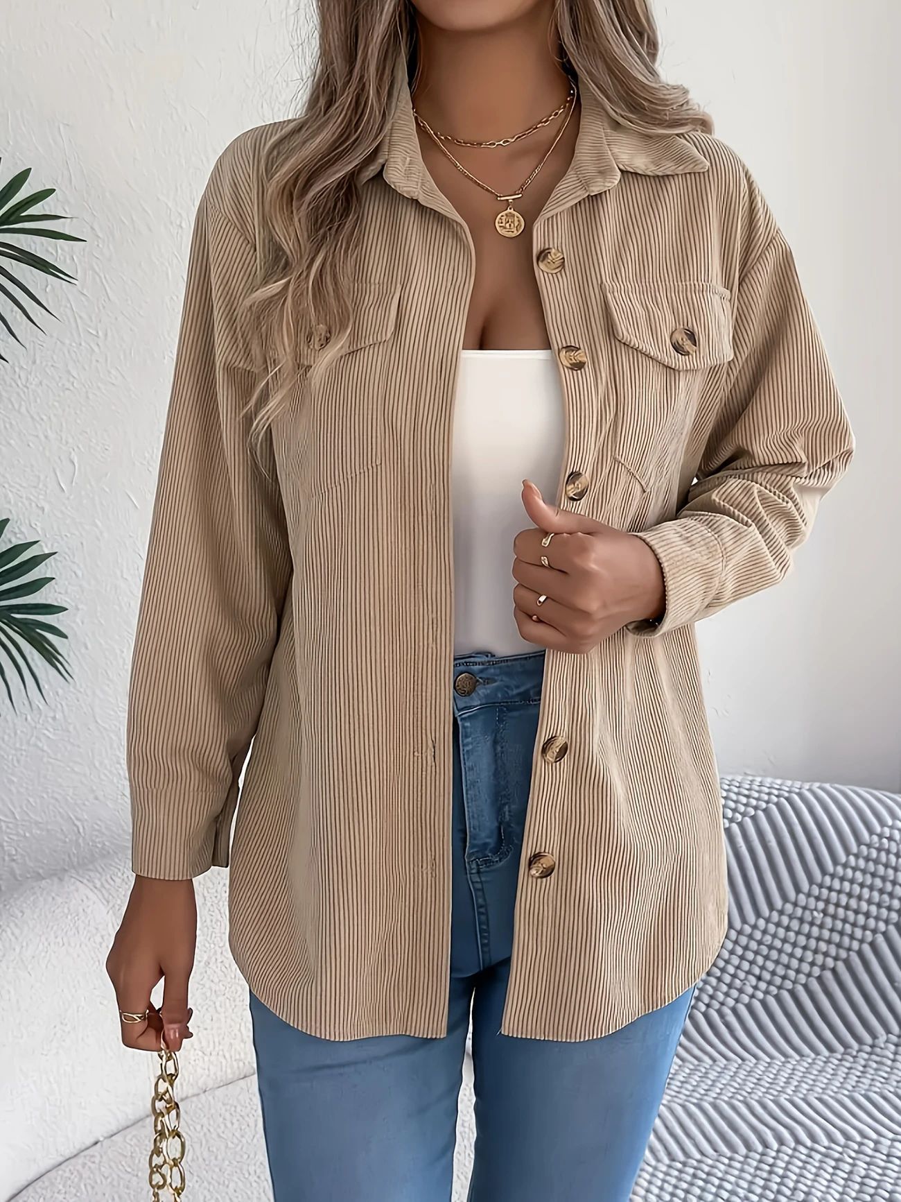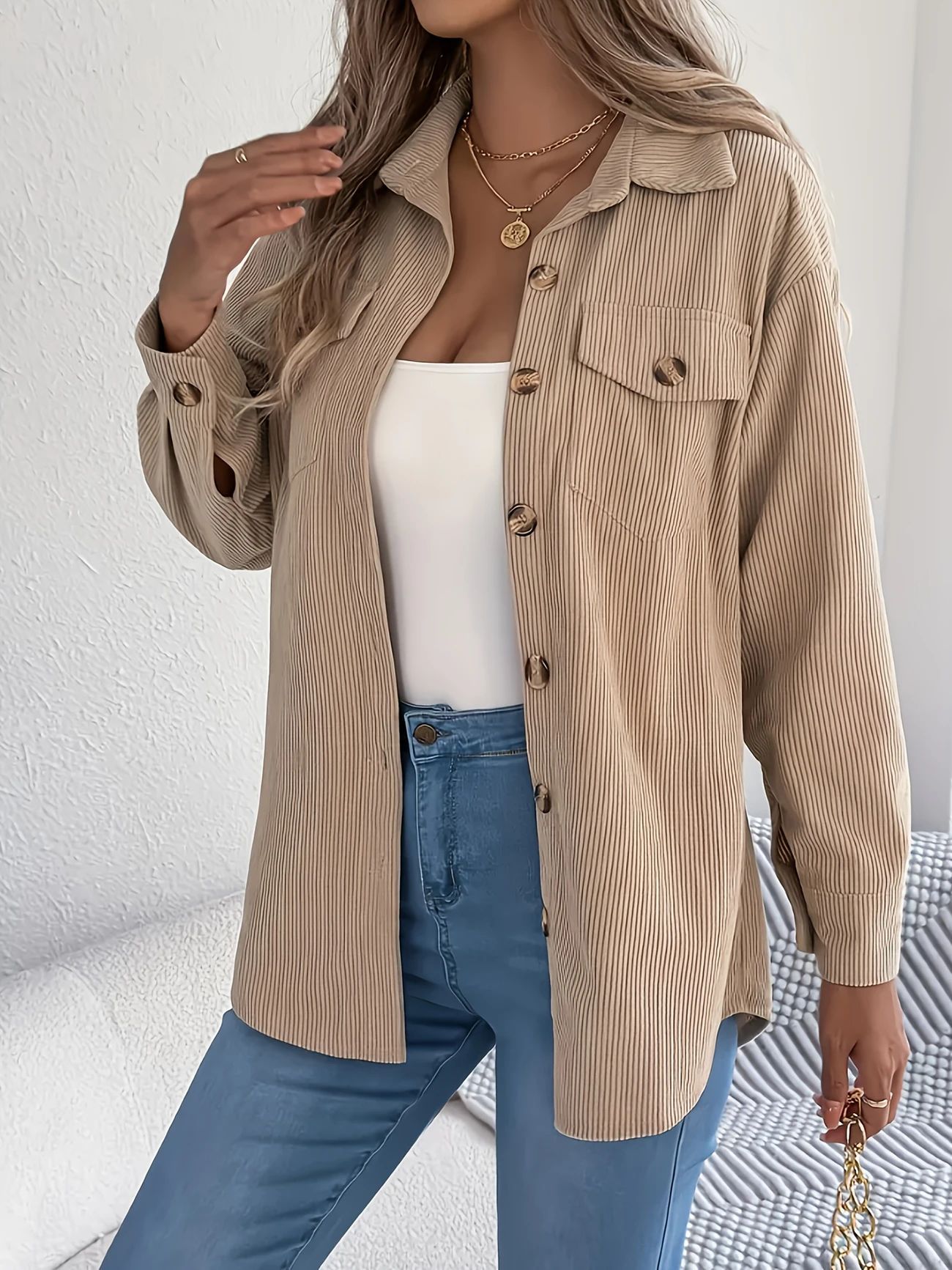 2025년 크로스보더 무역 코듀로이 셔츠 긴팔 여성복 고품질 가을 신상 심플 출퇴근 캐주얼 재킷