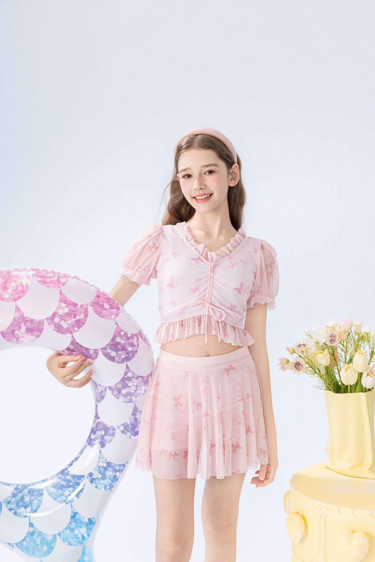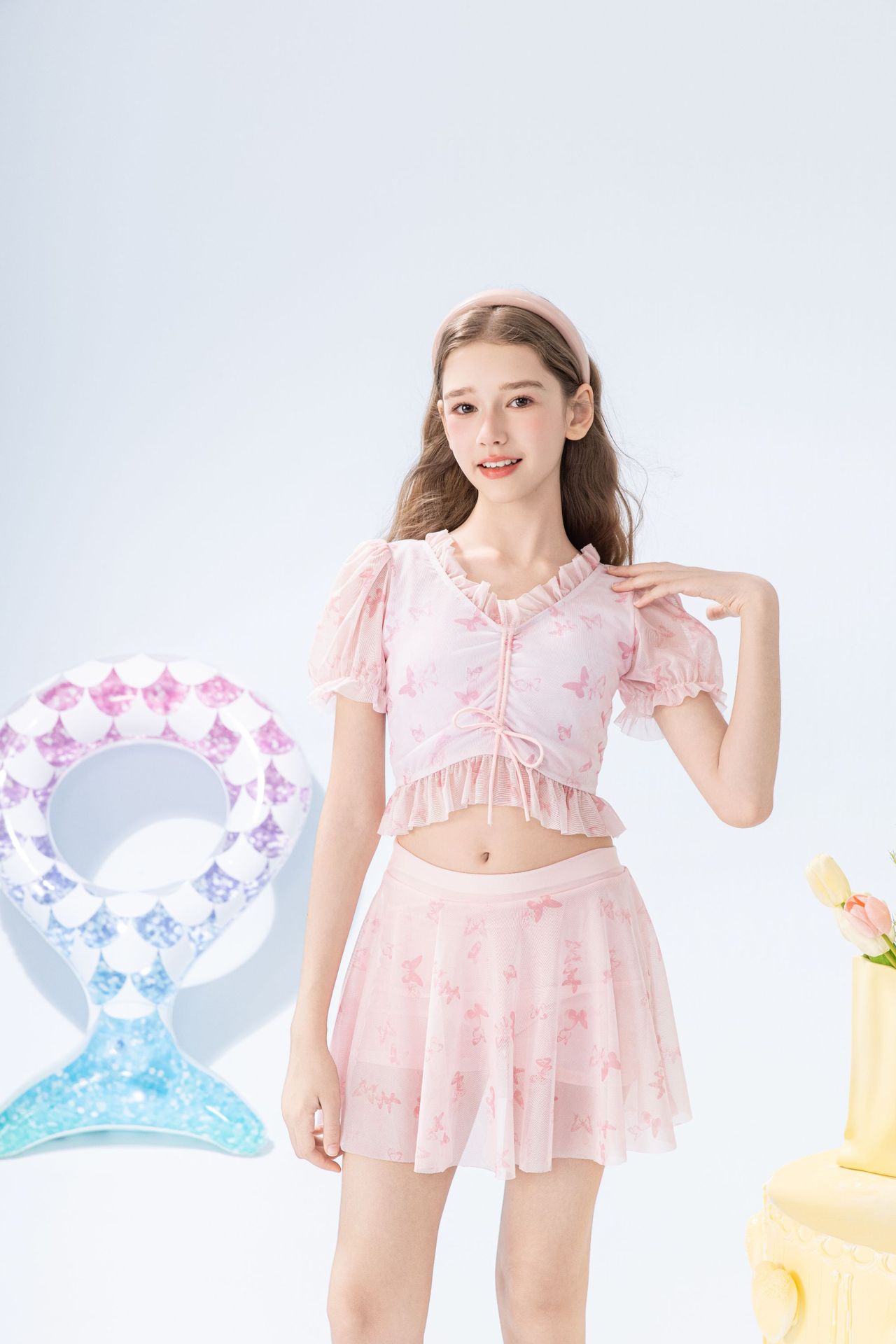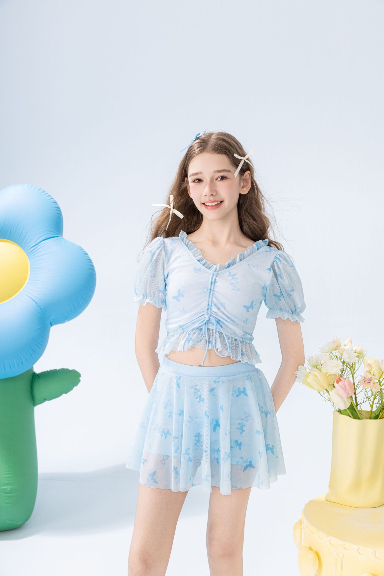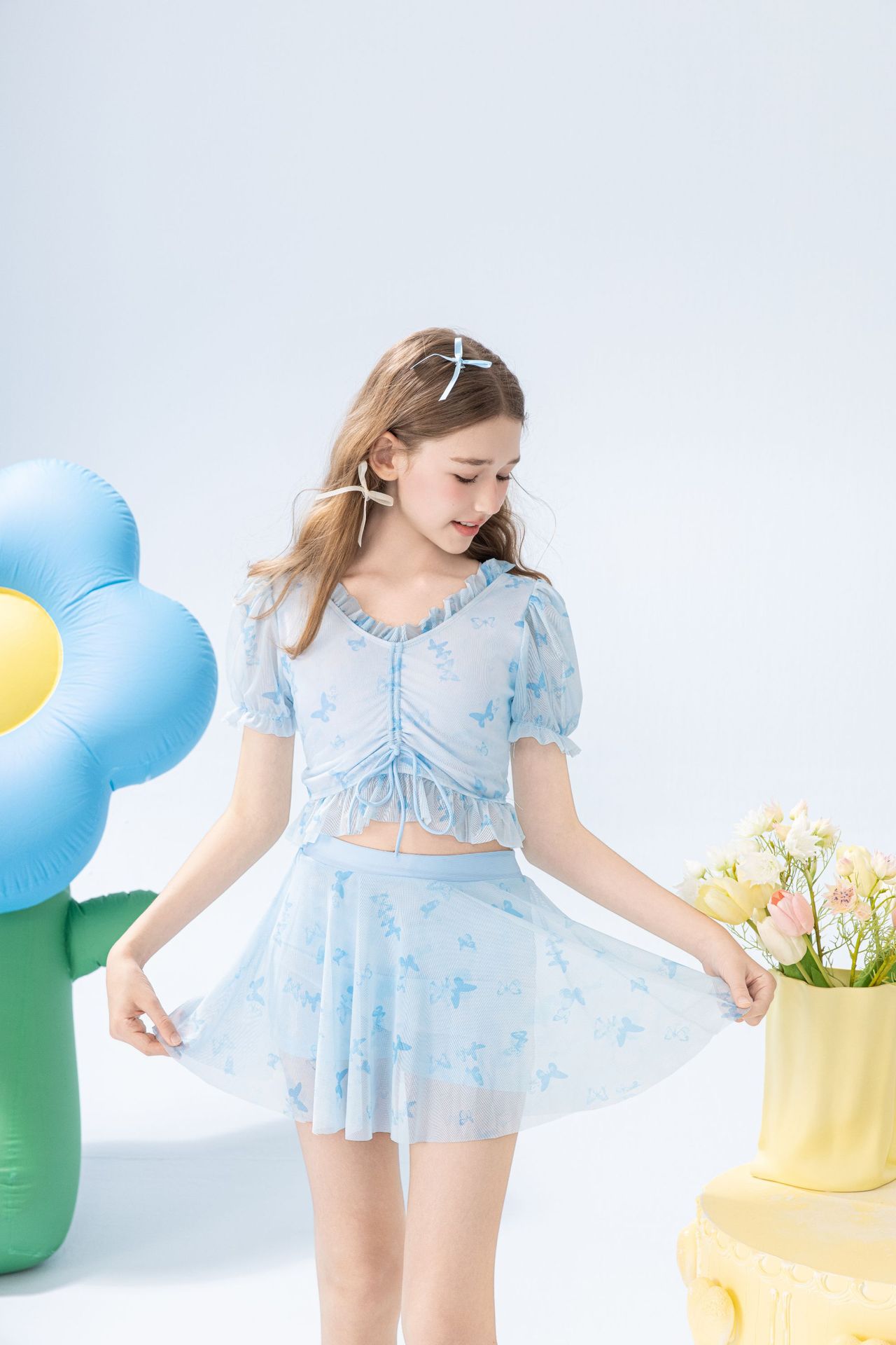 학생 소녀를 위한 새로운 스타일의 스플릿 소녀 수영복 투피스 세트, 슬림하고 신선한 온천 어린이 수영복