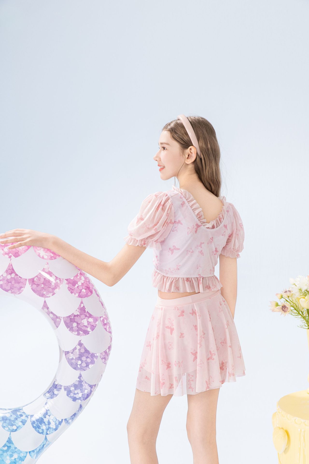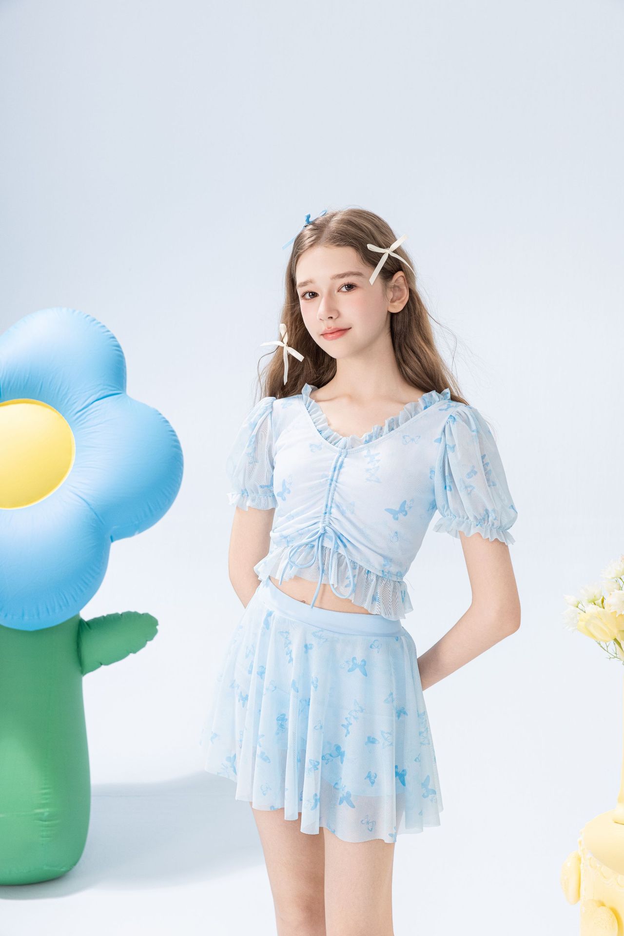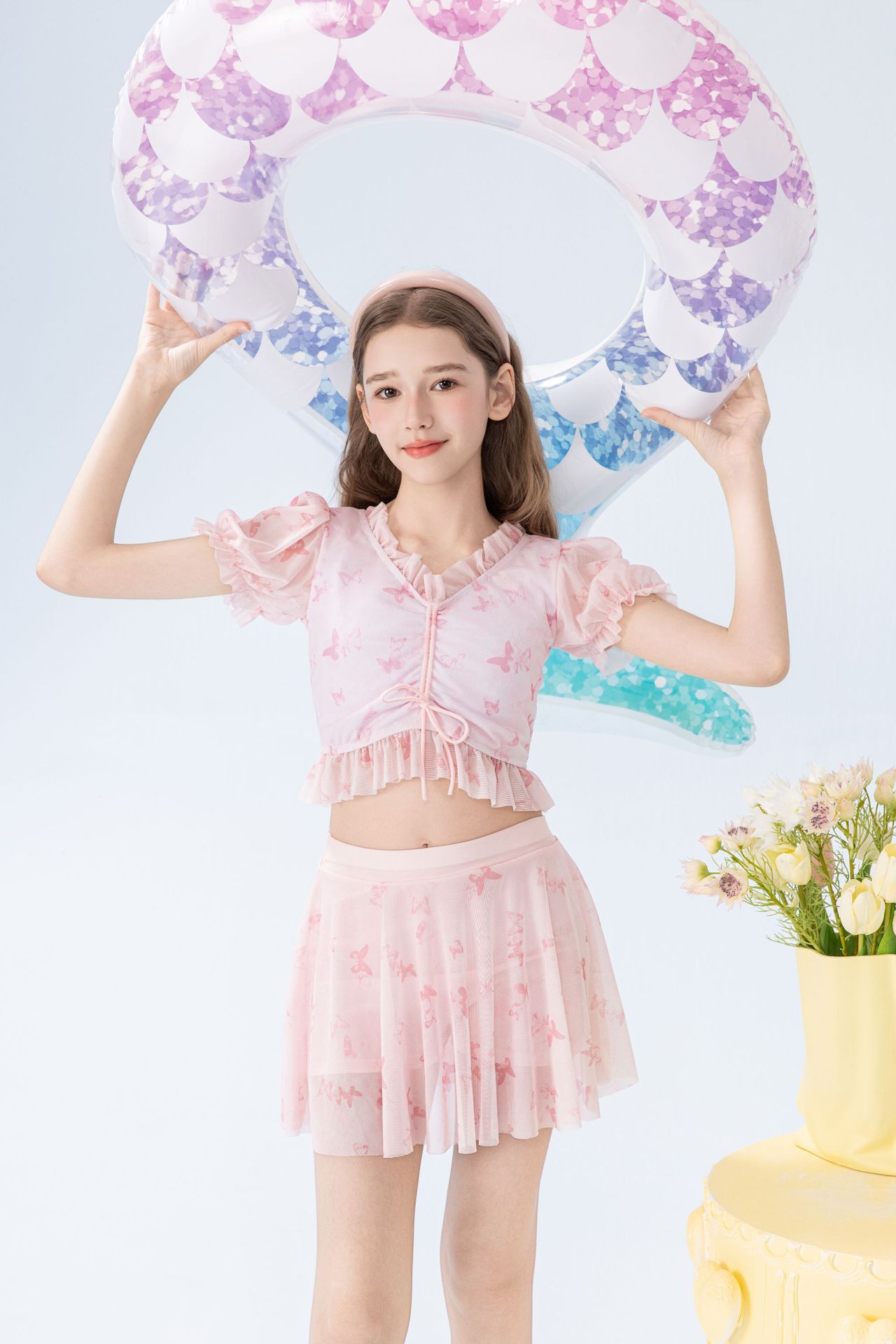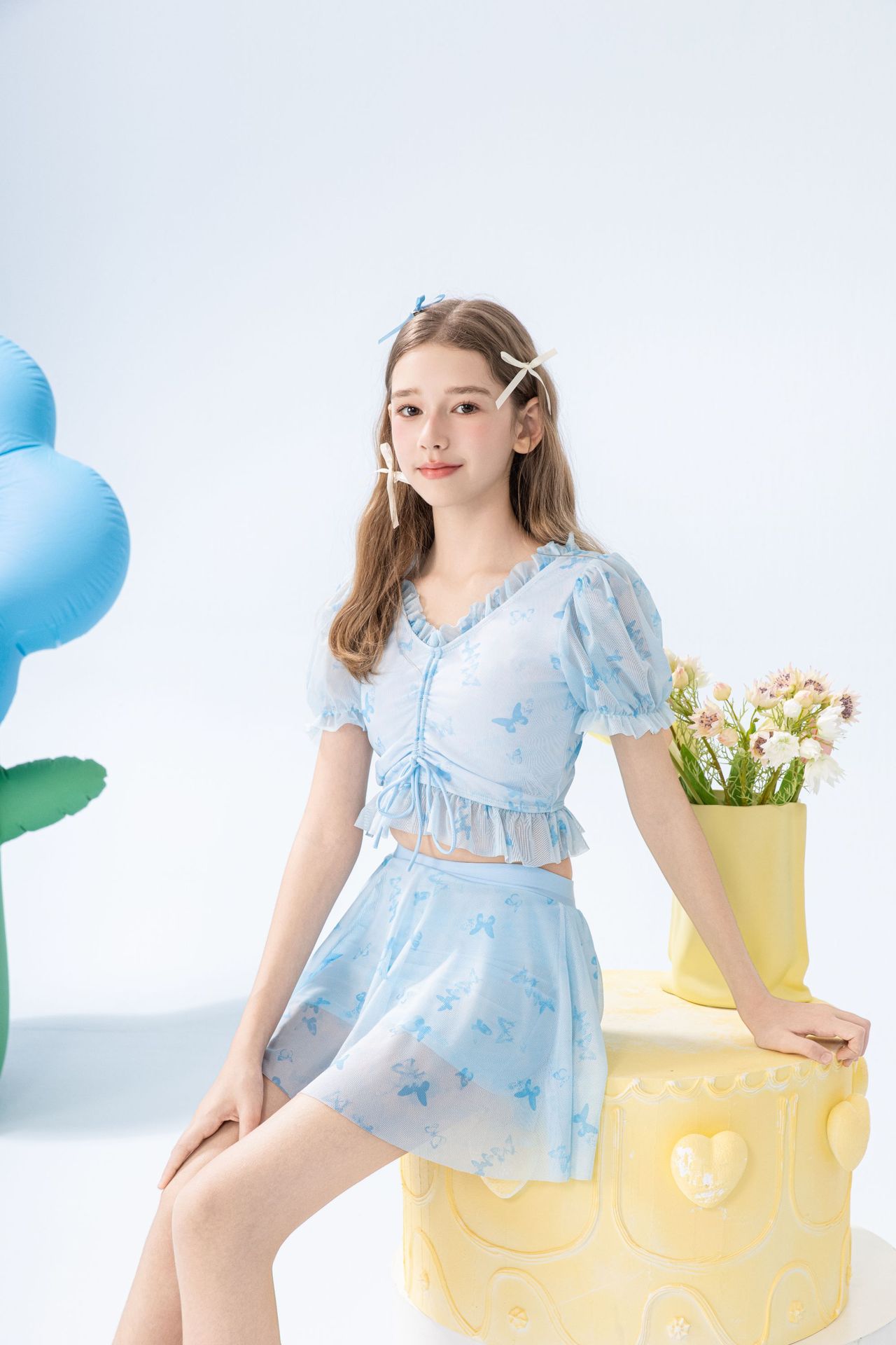 학생 소녀를 위한 새로운 스타일의 스플릿 소녀 수영복 투피스 세트, 슬림하고 신선한 온천 어린이 수영복