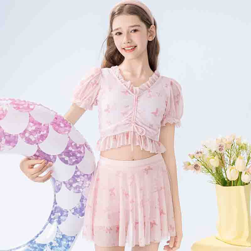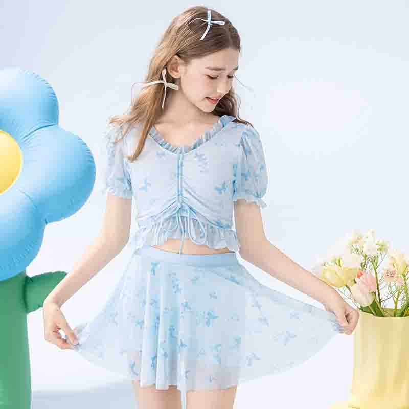 학생 소녀를 위한 새로운 스타일의 스플릿 소녀 수영복 투피스 세트, 슬림하고 신선한 온천 어린이 수영복스토어 가기