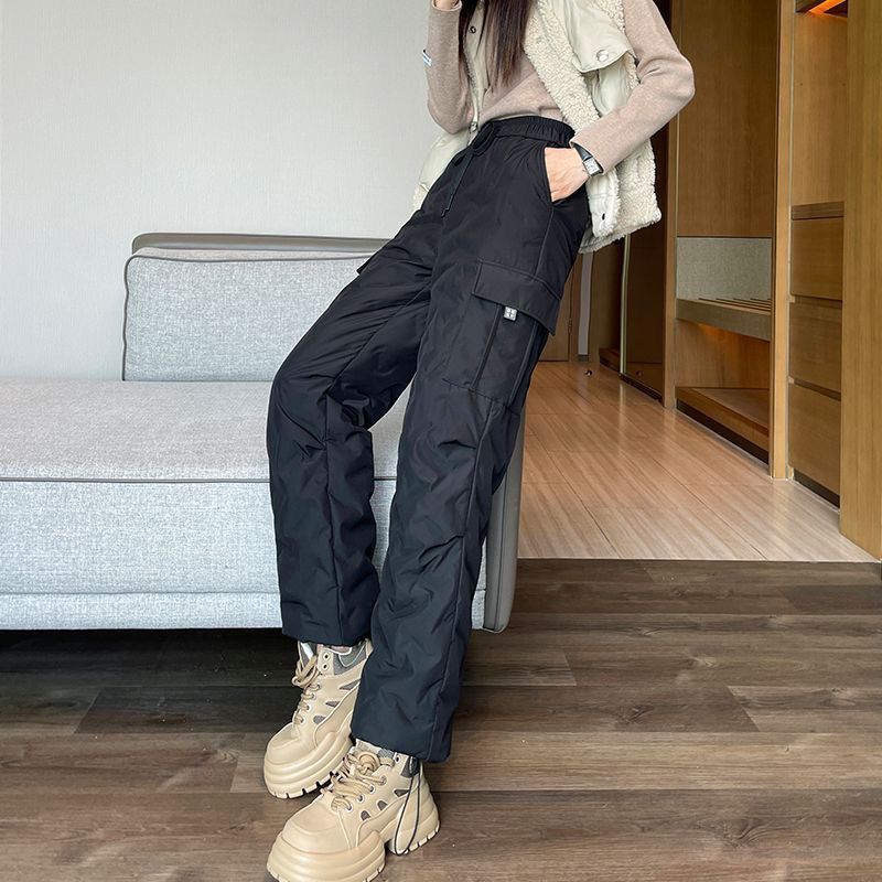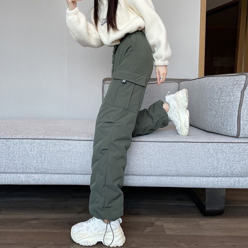 여성 겨울 2025 새로운 루즈 슬리밍 하이킹 바지 하이 웨이스트 콜드 코튼 바지 겉옷을위한 작업복 다운 코튼 바지
