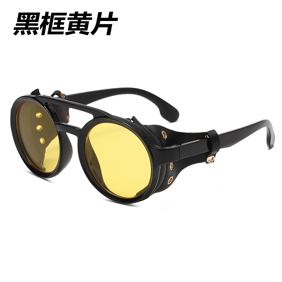 남성과 여성을 위한 스팀펑크 스타일의 둥근 대형 프레임 선글라스, 트렌디한 야외 사이클링, 등산 및 운전, 힙합 디스코 선글라스