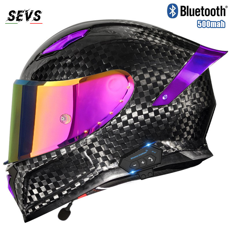 3C 인증 탄소 섬유 헬멧 도트 풀 헬멧 경량 오토바이 블루투스 러닝 헬멧 남성용 및 여성용 올 시즌 헬멧