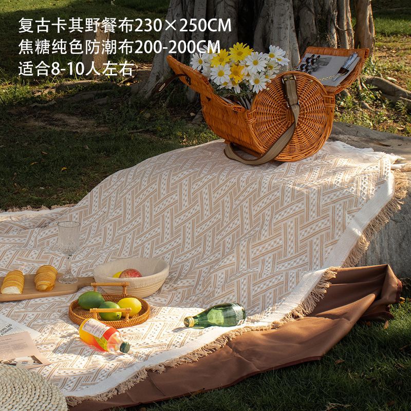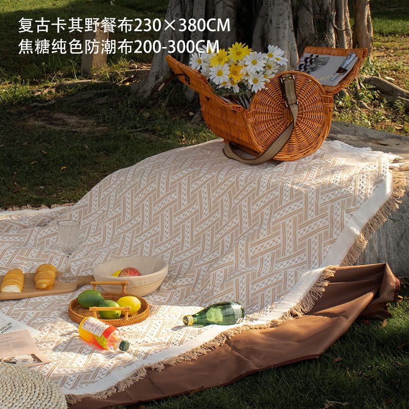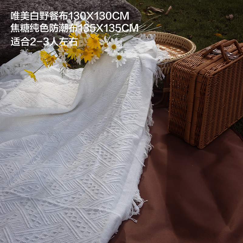 Dropshipping 프랑스 해변 피크닉 매트 방수 및 방습 흰색 야외 캠핑 피크닉 천 잔디 매트