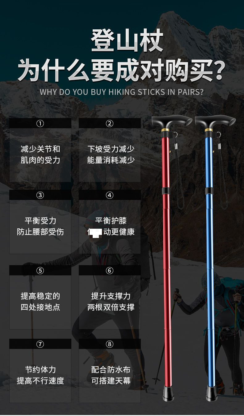 ZSD 독일 품질 다기능 지팡이 야외 하이킹 지팡이 탄소 초경량 텔레스코픽 접이식 지팡이 등산스토어 가기