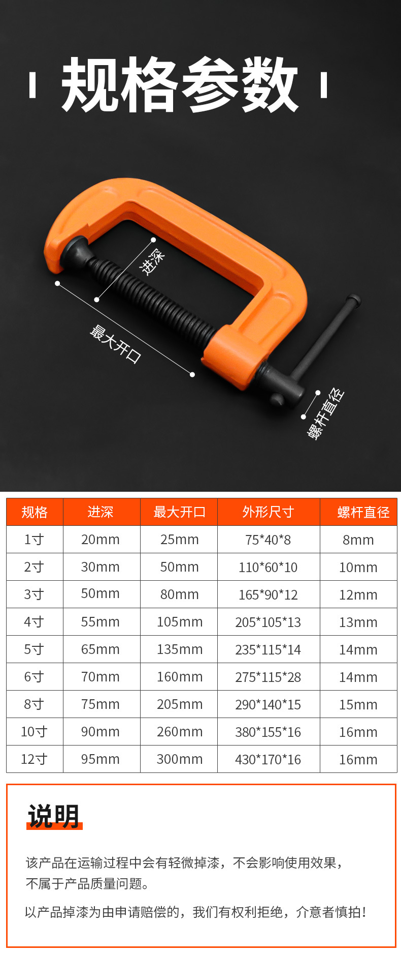 • 프리미엄 오렌지 G자형 클립【4inch】