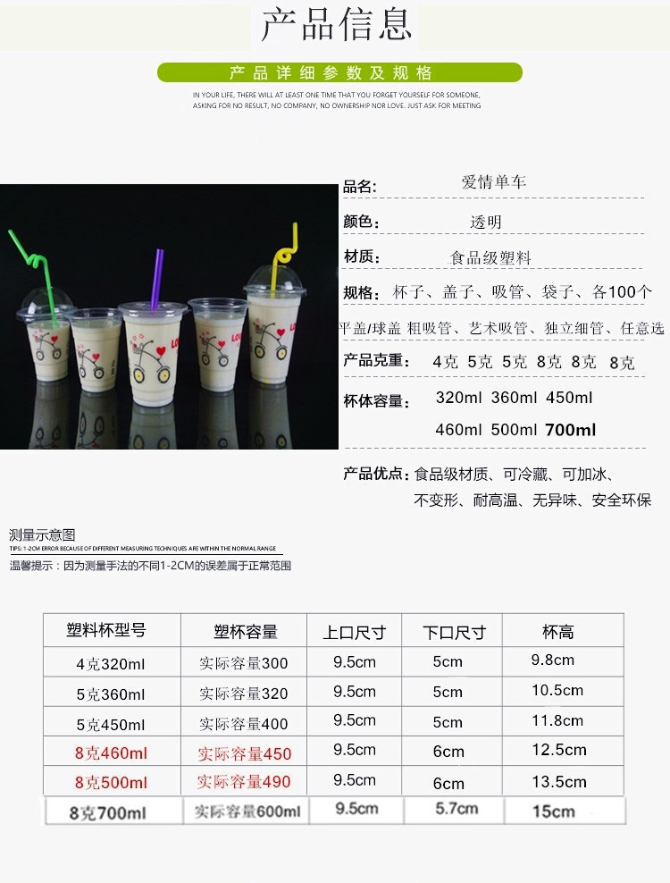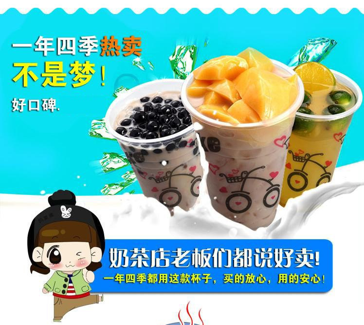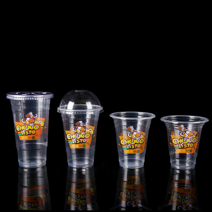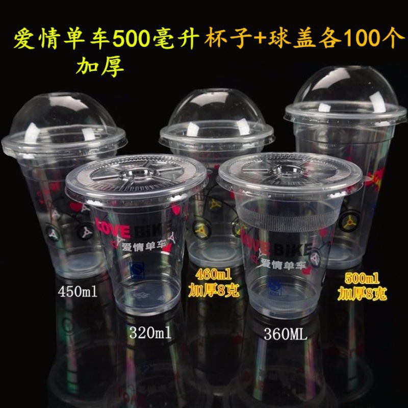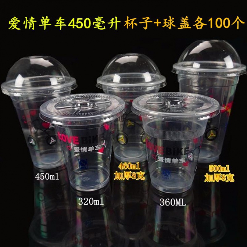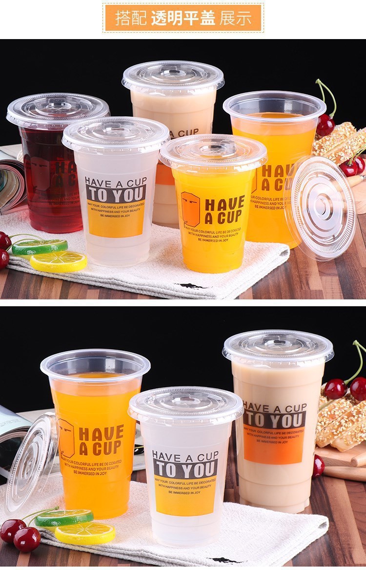 뚜껑이 있는 플라스틱 컵 일회용 밀크티 컵 차가운 음료 컵 주스 컵 뚜껑이 있는 두유 컵 세트 빨대 배치