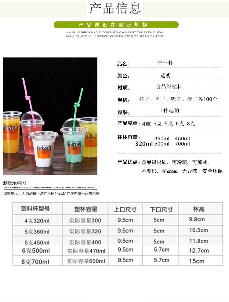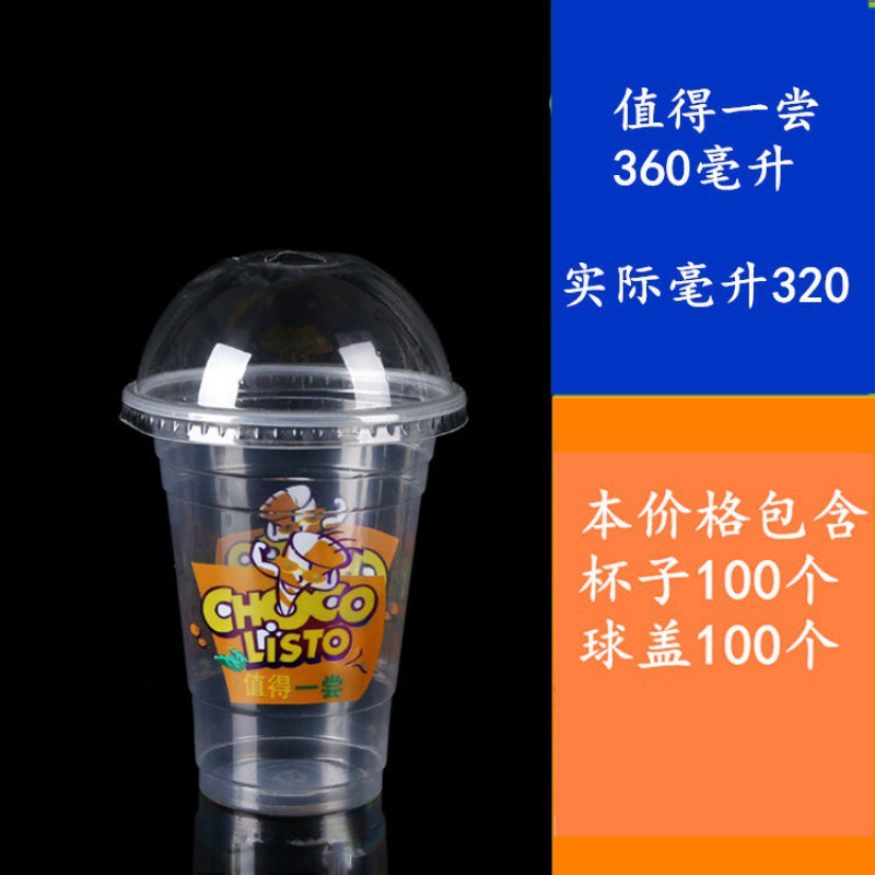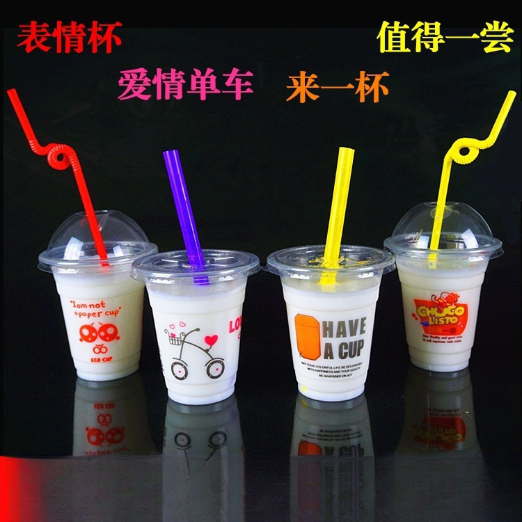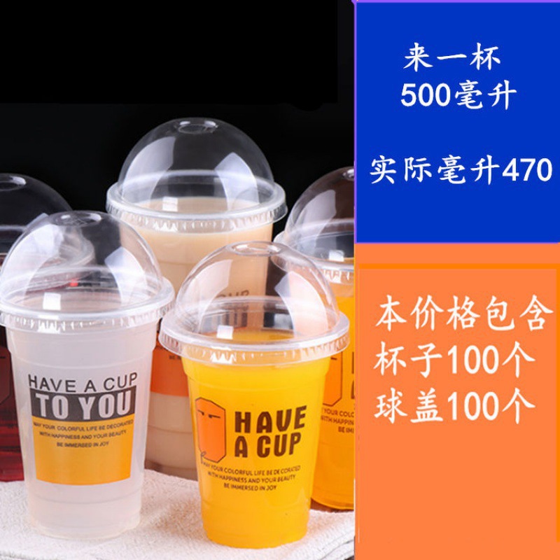 뚜껑이 있는 플라스틱 컵 일회용 밀크티 컵 차가운 음료 컵 주스 컵 뚜껑이 있는 두유 컵 세트 빨대 배치스토어 가기