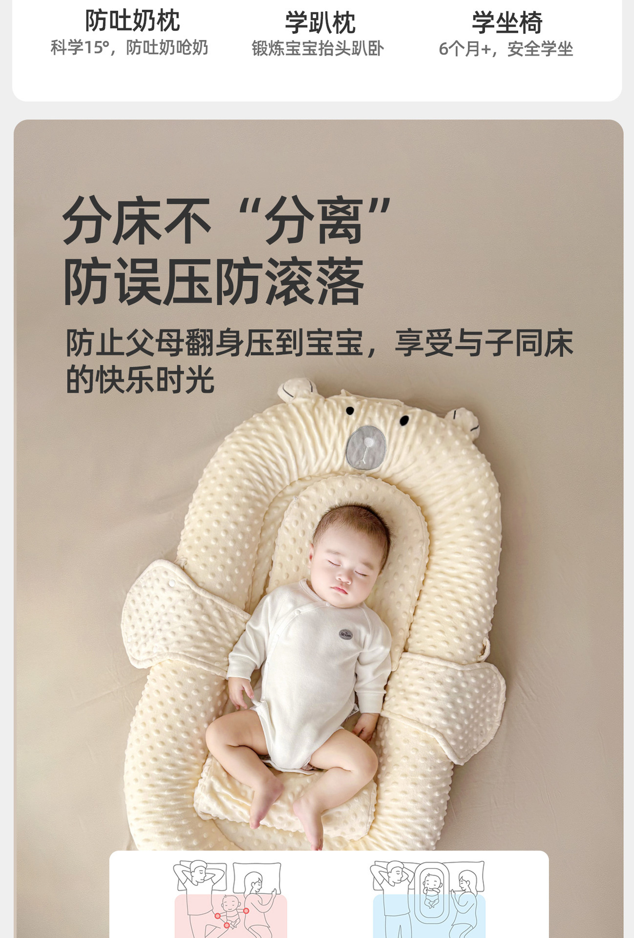 아기 구토 방지 진정 경사형 생체 공학 침대 충격 방지 이동식 유아용 침대스토어 가기