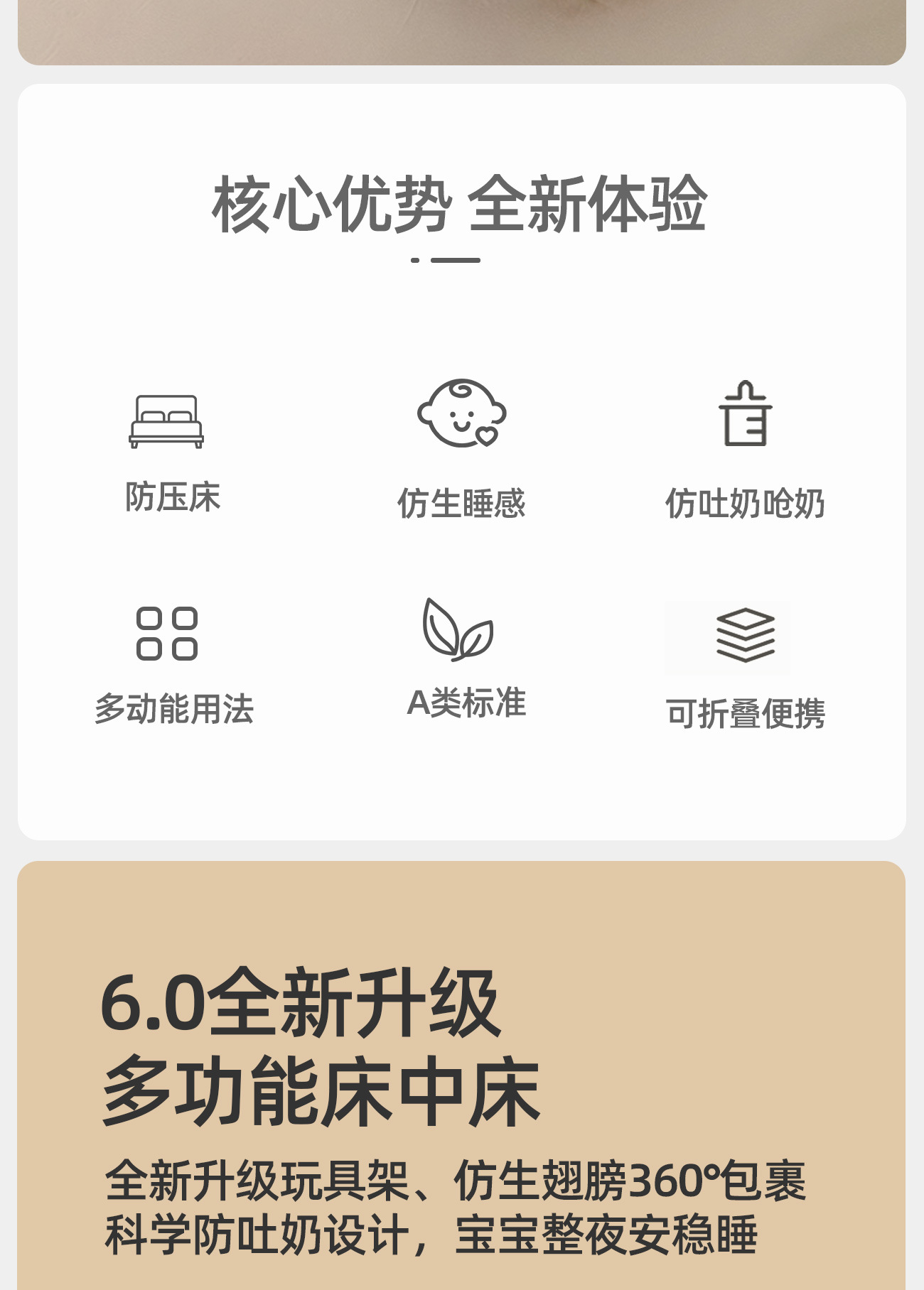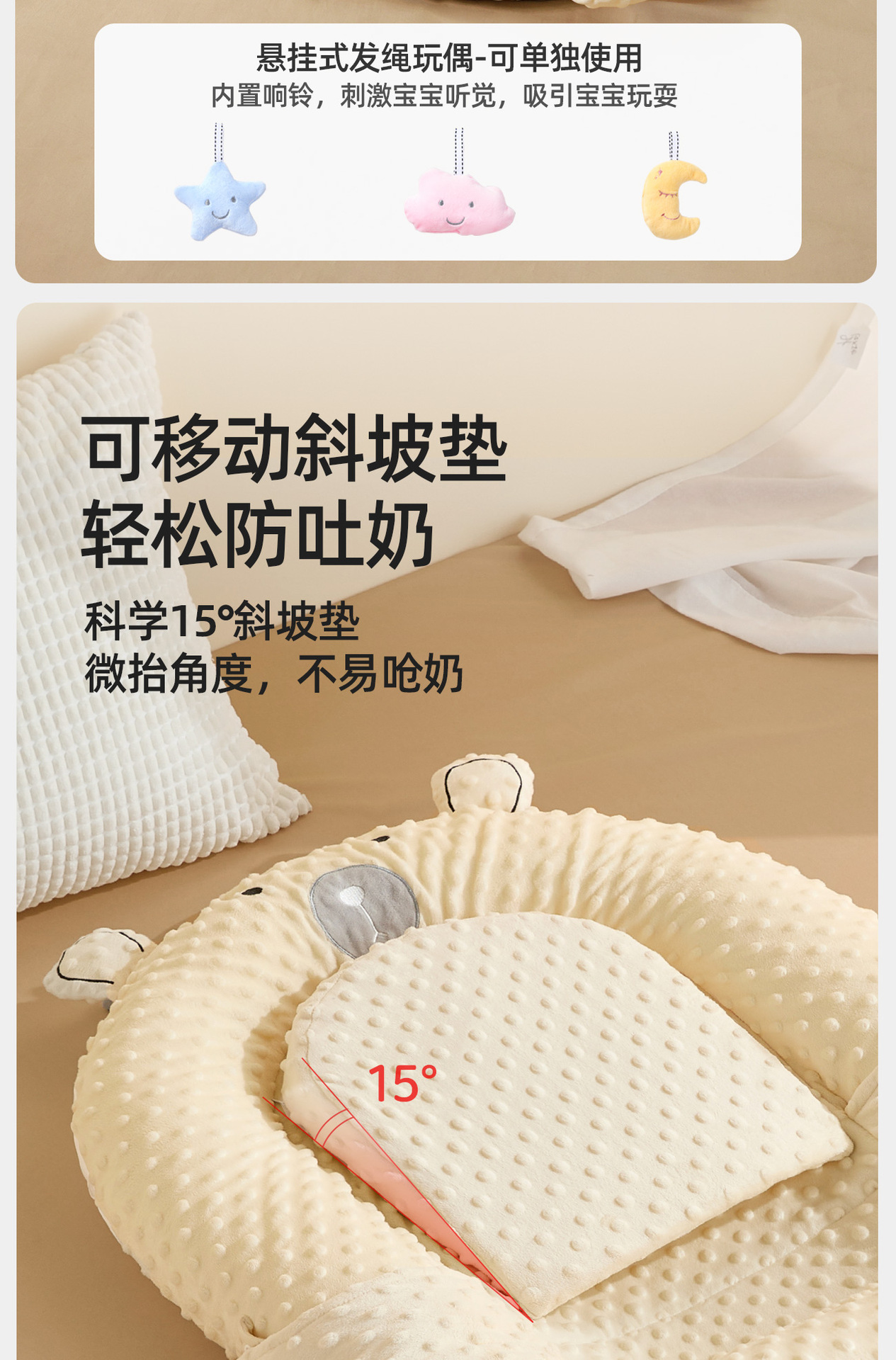 아기 구토 방지 진정 경사형 생체 공학 침대 충격 방지 이동식 유아용 침대