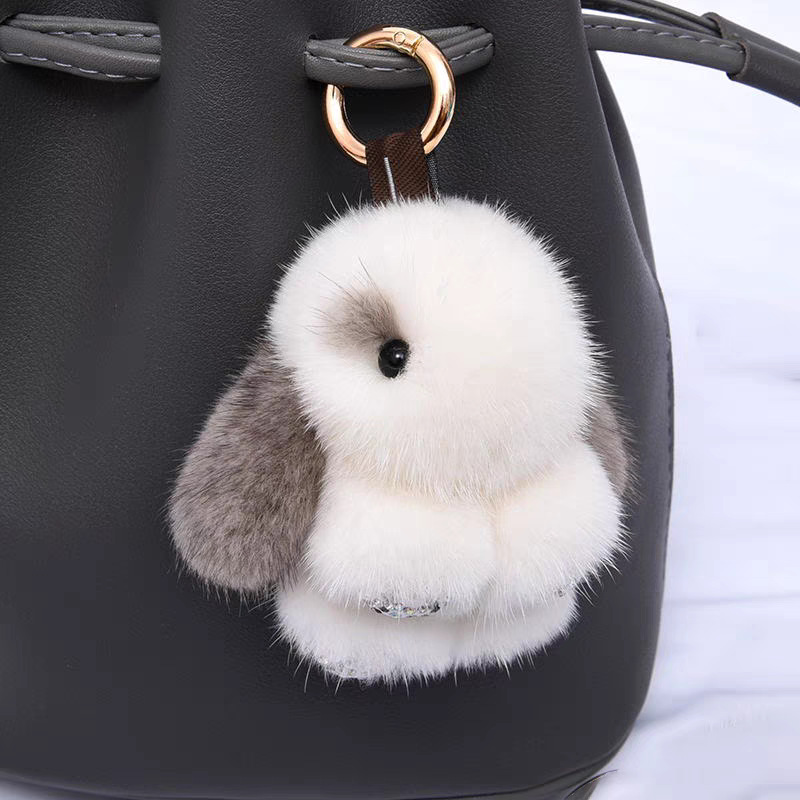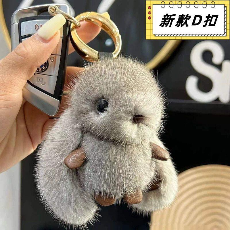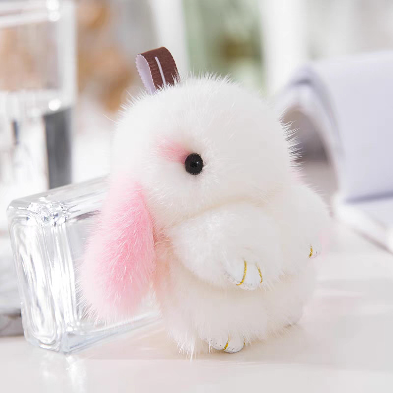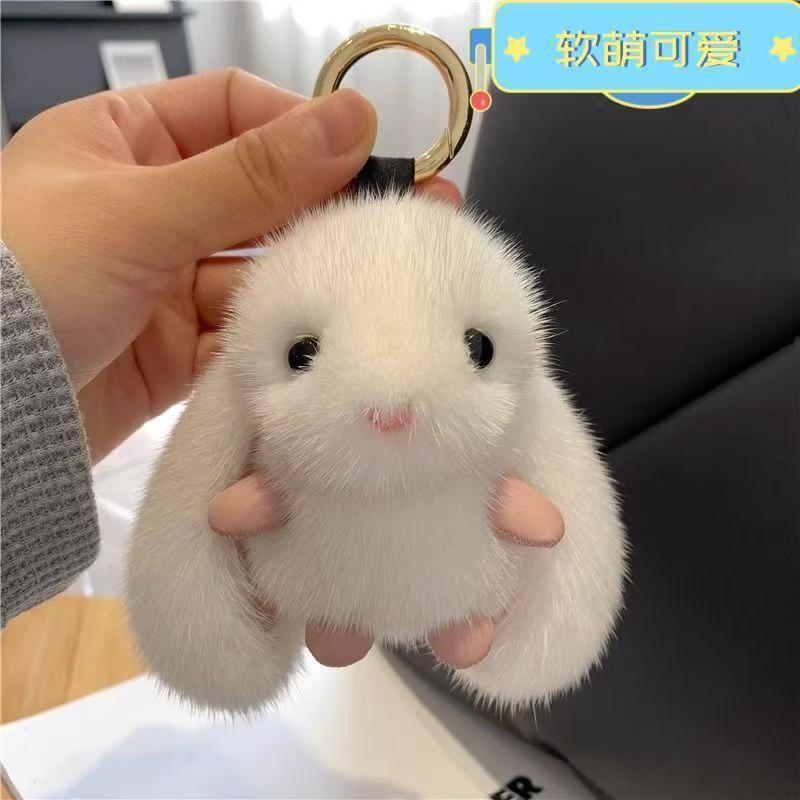 새로운 인터넷 연예인 모조 밍크 플러시 토끼 귀여운 펜던트 자동차 키 체인 인형 가방 펜던트 커플 선물