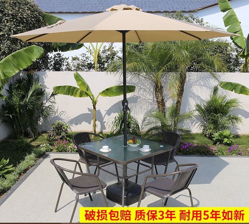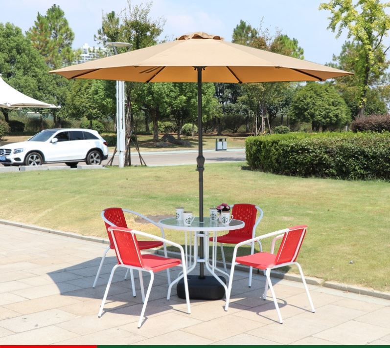 • :T52—패키지 23: 의자 4개 + 정사각형 테이블 90개 + 철제 중앙 기둥 우산 + 베이스