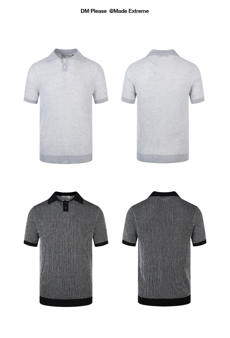 EME 남성 의류 올드 머니 스타일 레트로 갈매기 칼라 파인 핏 스트립 스트레치 반팔 여름 캐주얼 스웨터 티셔츠