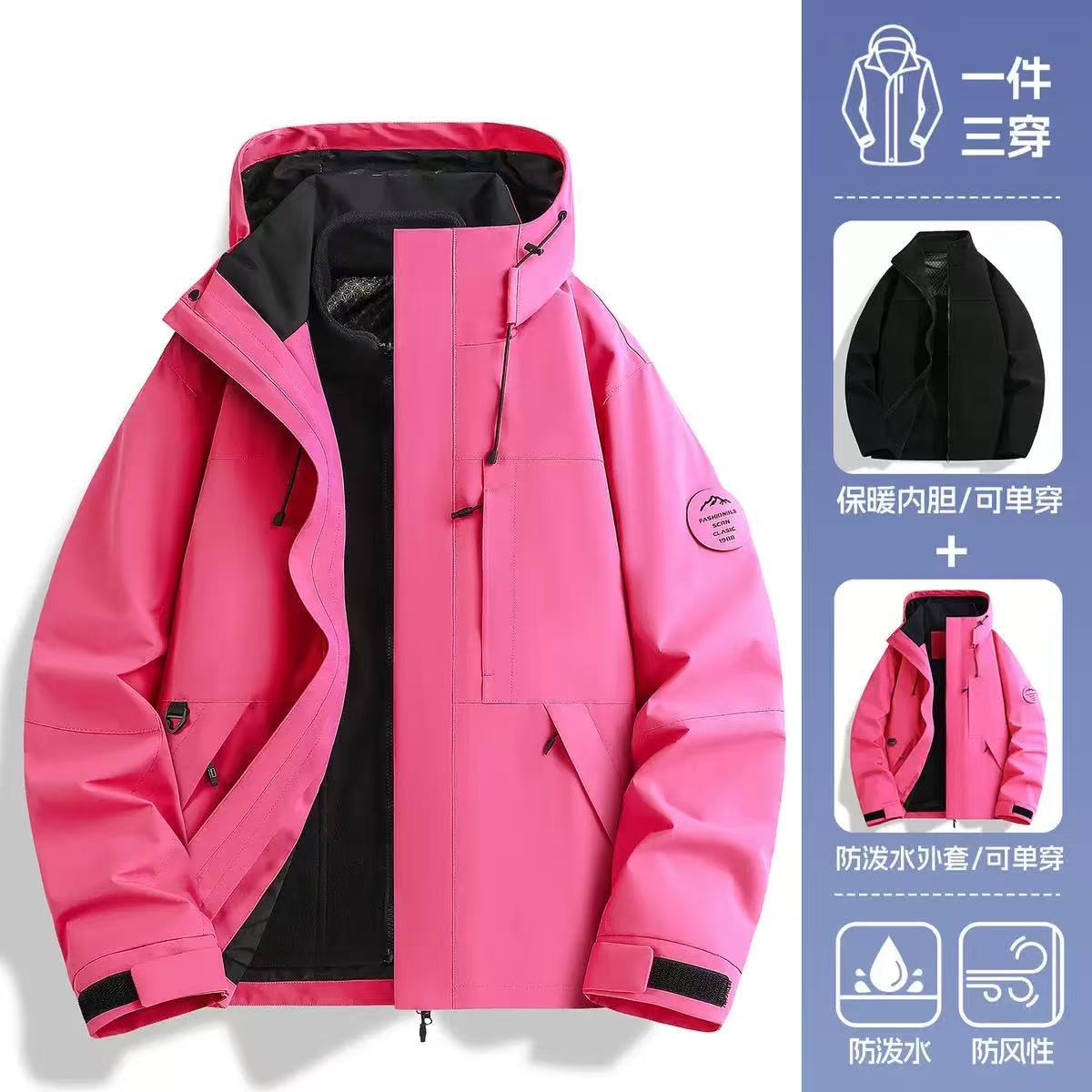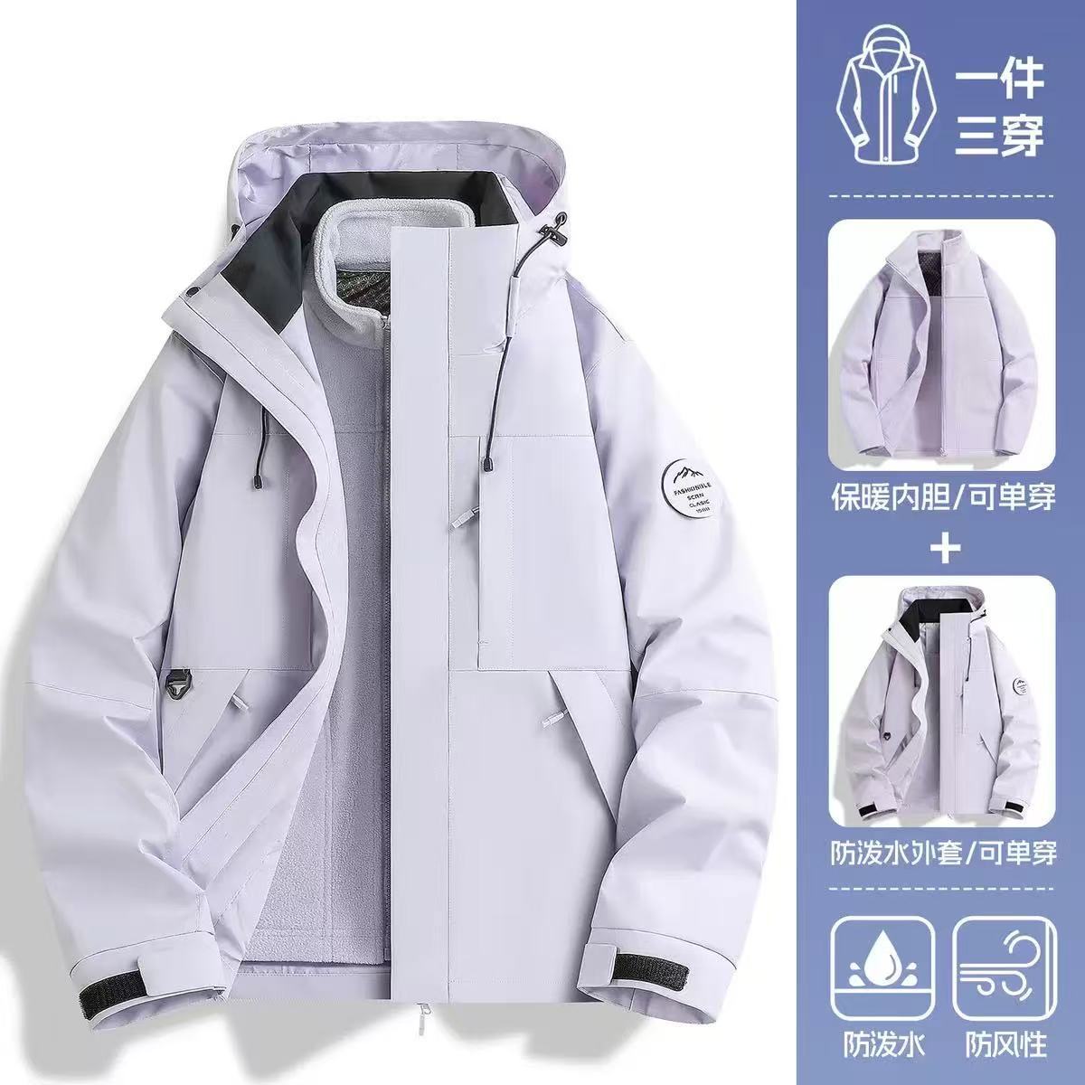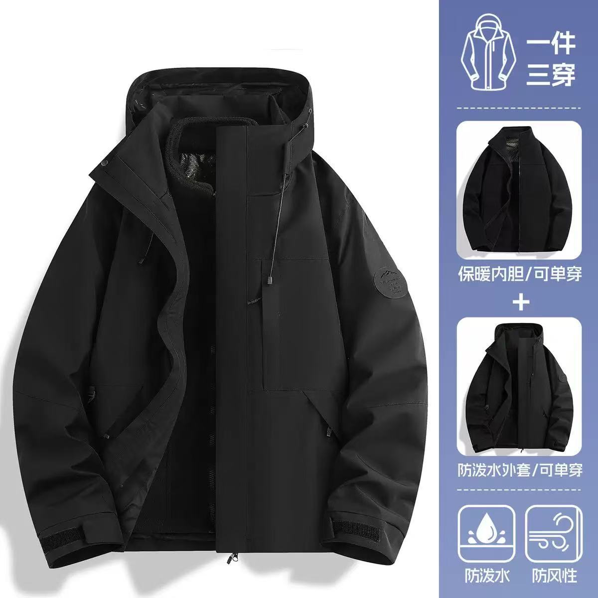 남녀공용 3-in-1 방풍 방수 탈부착 가능 아웃도어 플리스 등산복 작업복 로고 맞춤 제작