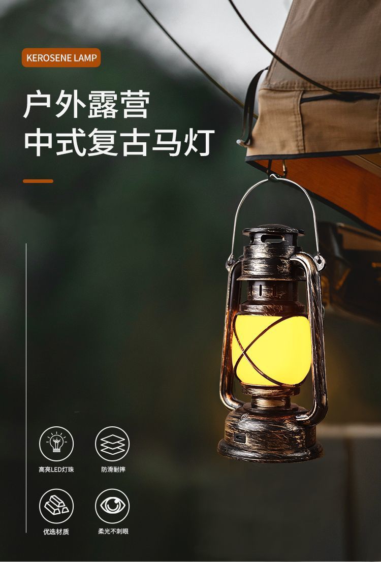 충전식 캠핑 테이블 램프, 복고풍 말 랜턴, 휴대용 램프, 대형 캠프 탁상 램프, 바 레스토랑 장식 야간 조명