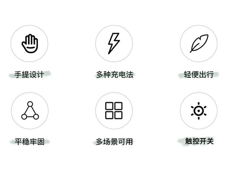 • 충전 케이블이 없는 단일 조명(밝은 색상 참고)