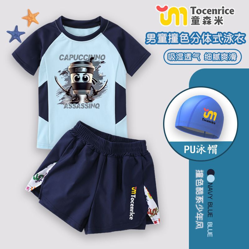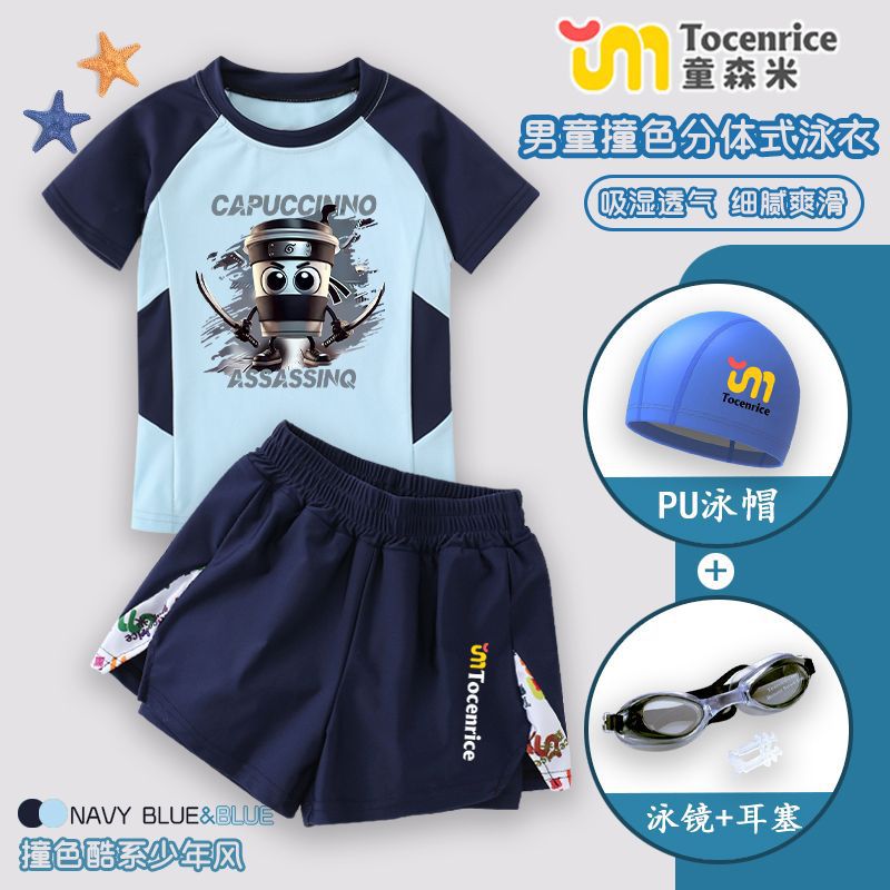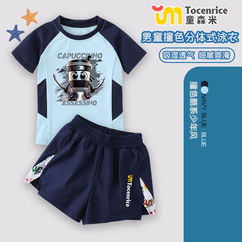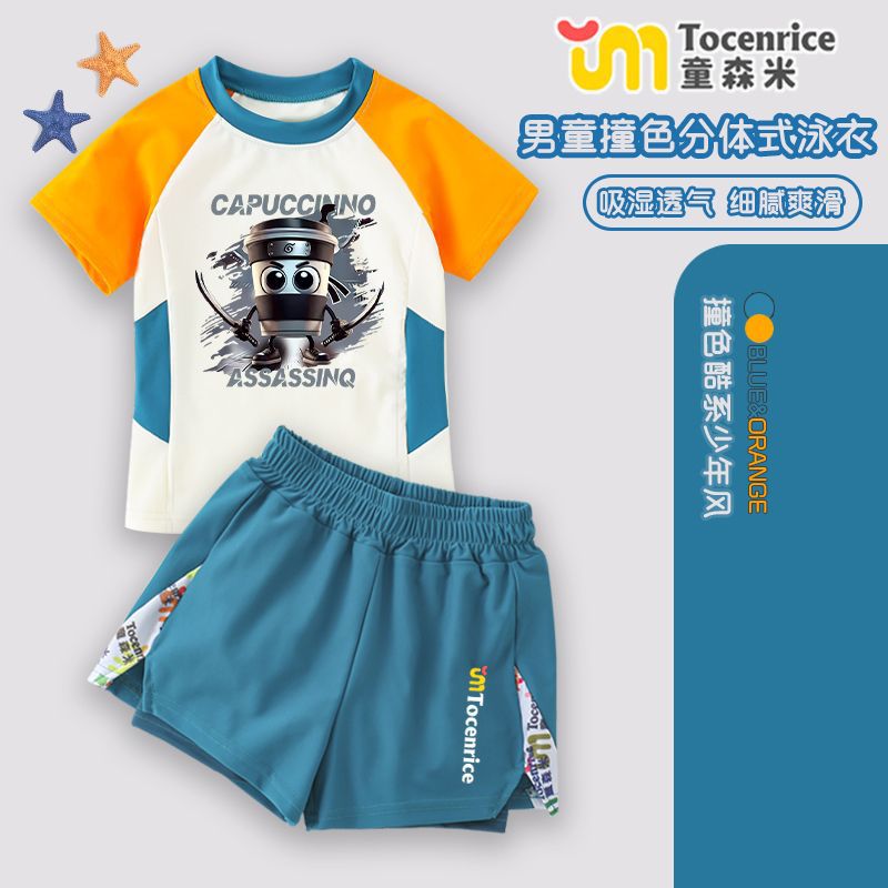 새로운 Tungtungsahur 외국 산과 바다 어린이 수영복 스플릿 소년 수영복스토어 가기