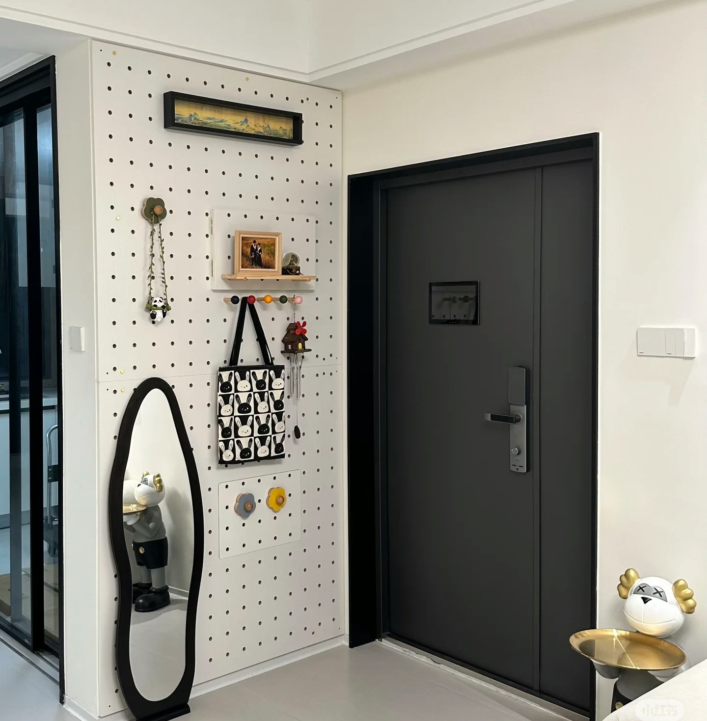 거실 단단한 나무 구멍 보드 보관함 전체 벽 수납 입구 문 걸이 보드 벽 장식 디스플레이 보드 파티션스토어 가기